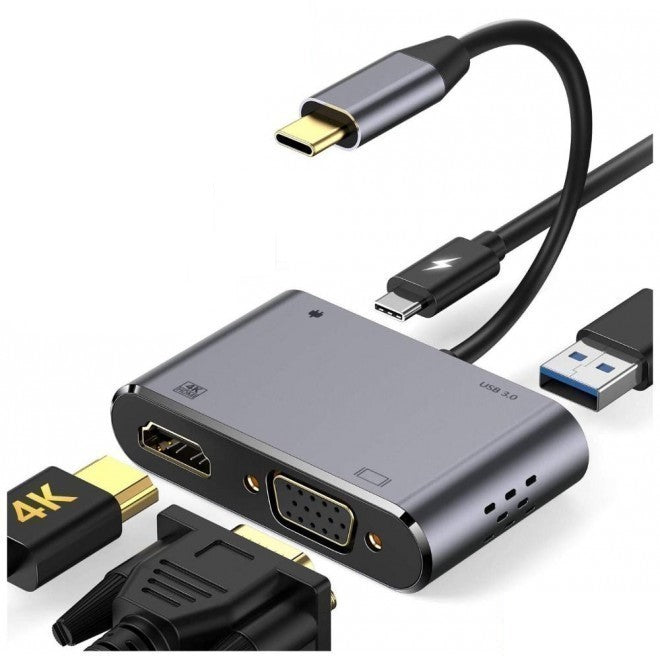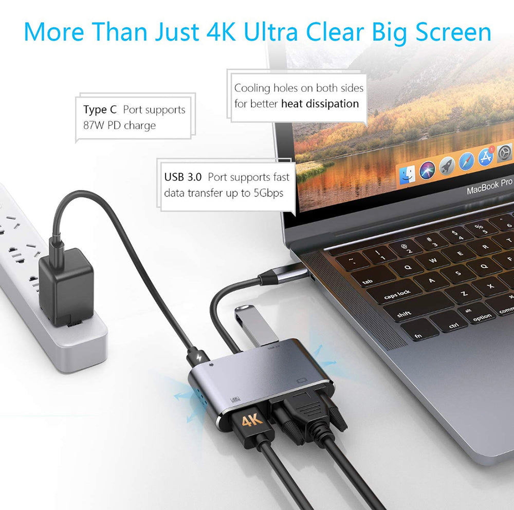 5 in 1 USB-C Type-C Hub USB 3.0 + 4K HDMI + VGA Ports for Laptop
