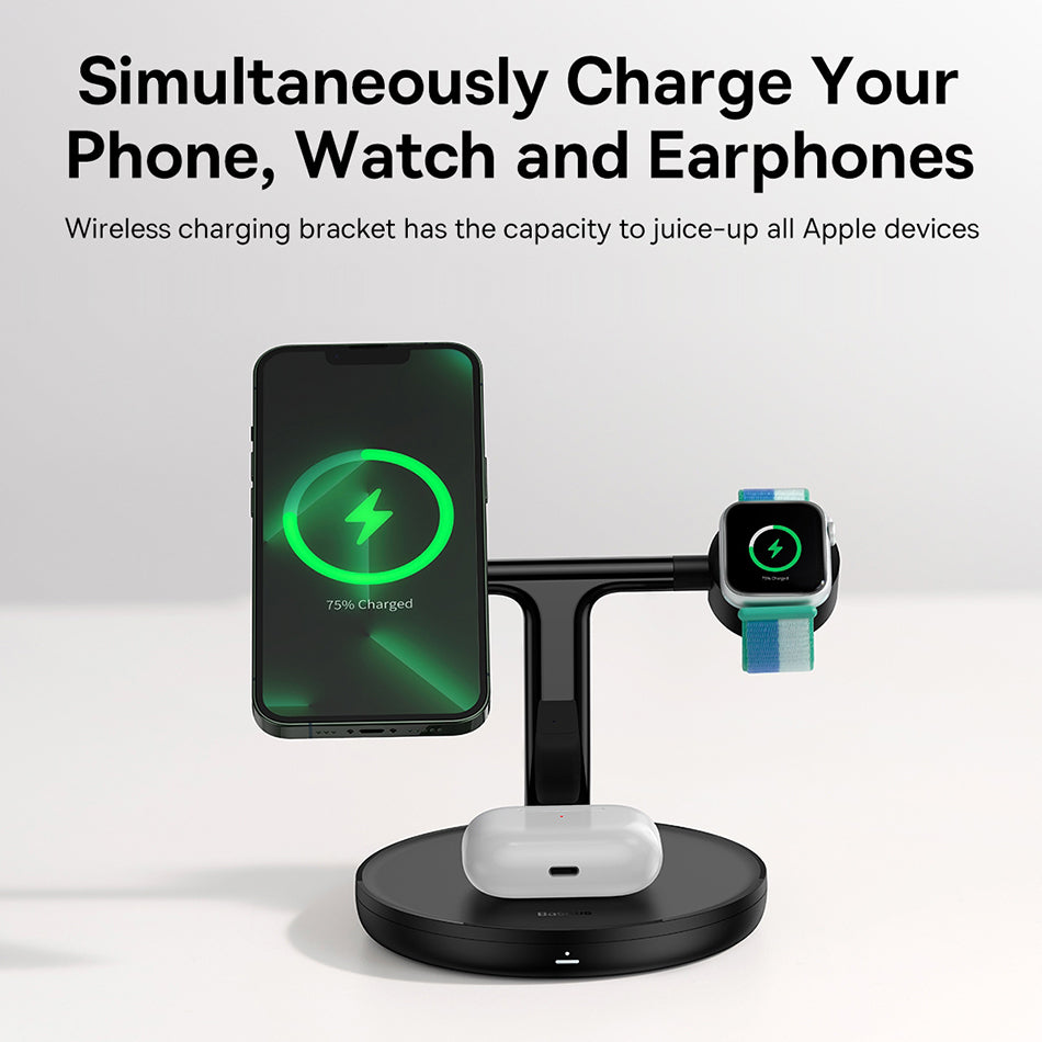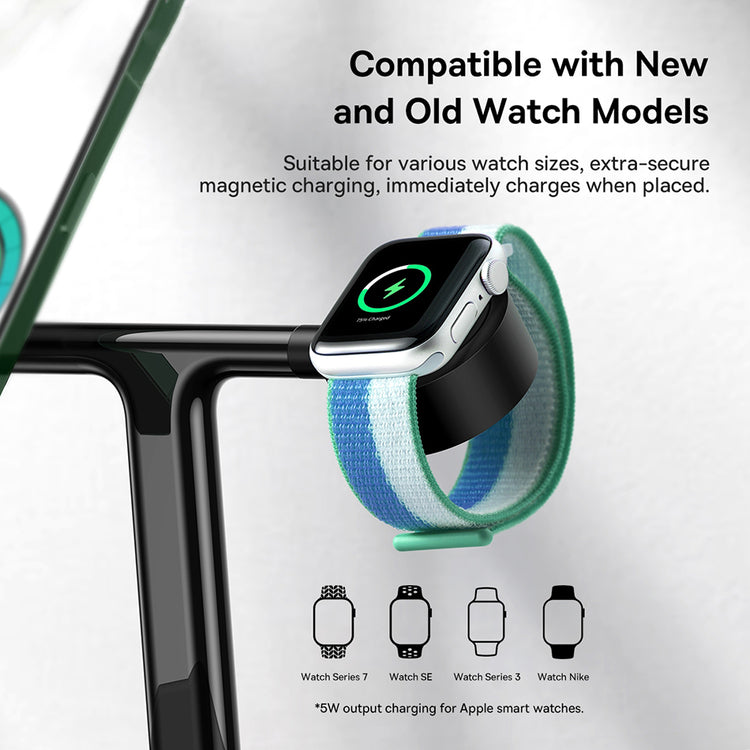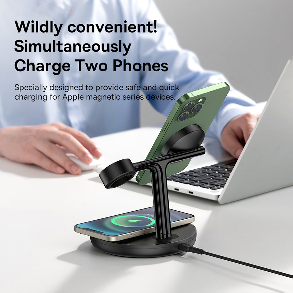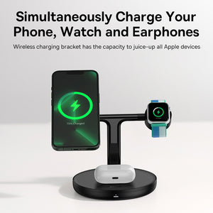 All-in-One Charging: This dock station simplifies your life with support for iPhone, Apple Watch, and AirPods charging, all in one sleek unit.