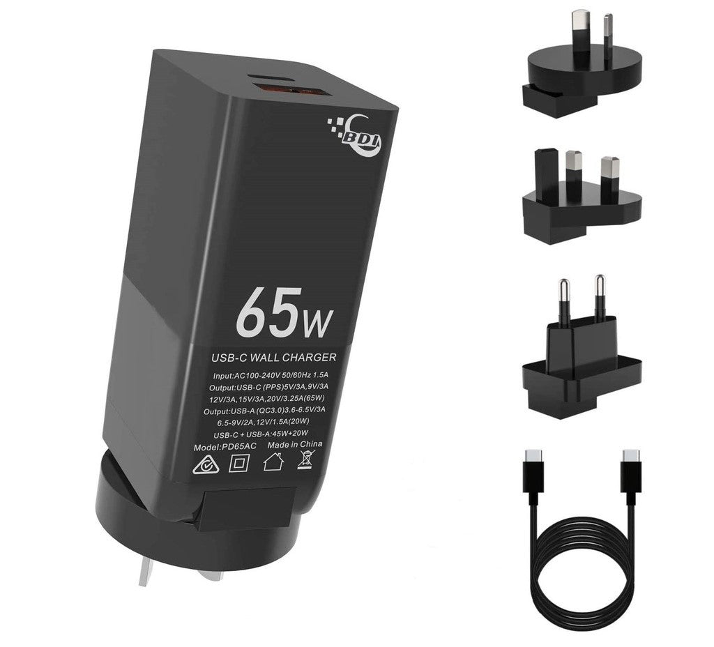 BDI 65W GaN USB-C Wall Charger QC 3.0 Power Adapter Kit
