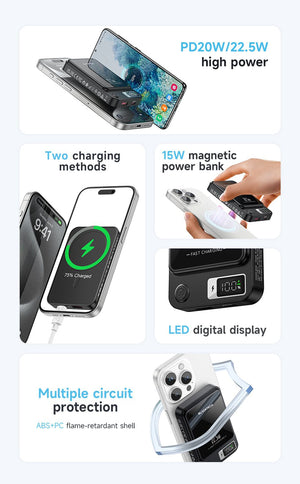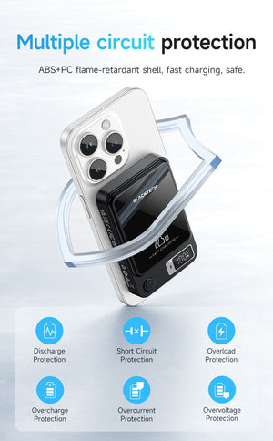 - Magsafe Compatible: Seamlessly integrate with Magsafe technology for a hassle-free charging experience. The power bank is designed to work effortlessly with your Magsafe-compatible iPhone, ensuring optimal functionality.