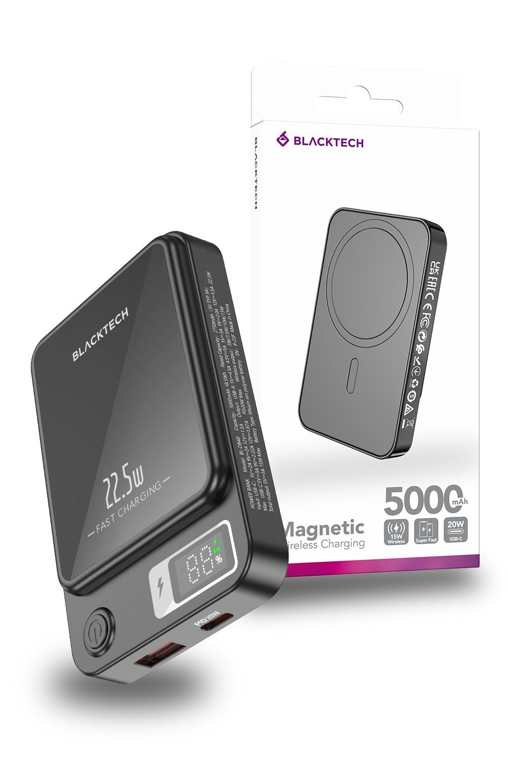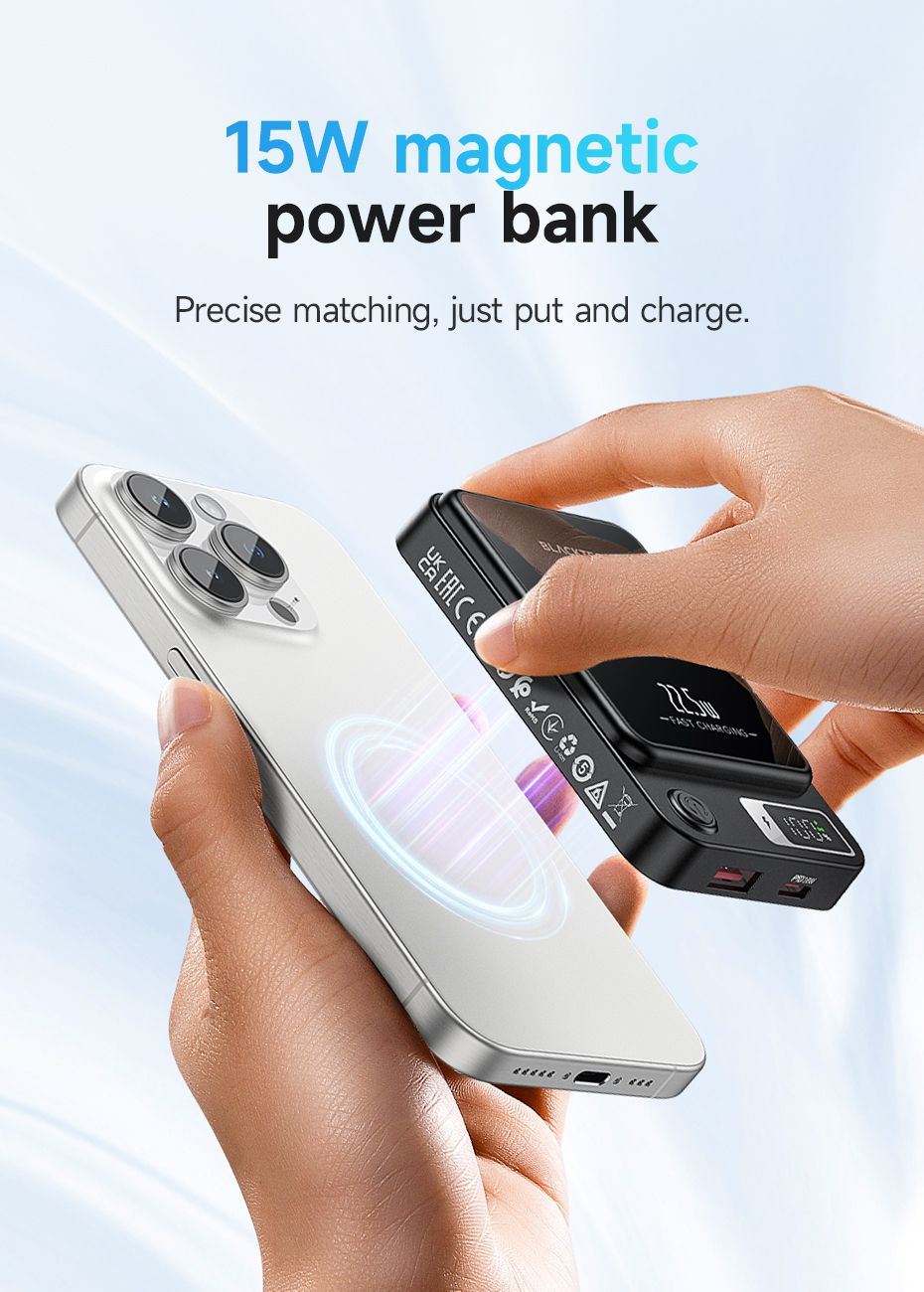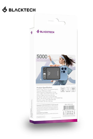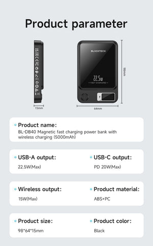 - Magsafe Magnetic Charging: Elevate your charging experience with the Blacktech 20W Magsafe Magnetic Mini Power Bank, designed to seamlessly complement and enhance your iPhone 15/14/13/12's charging capabilities.