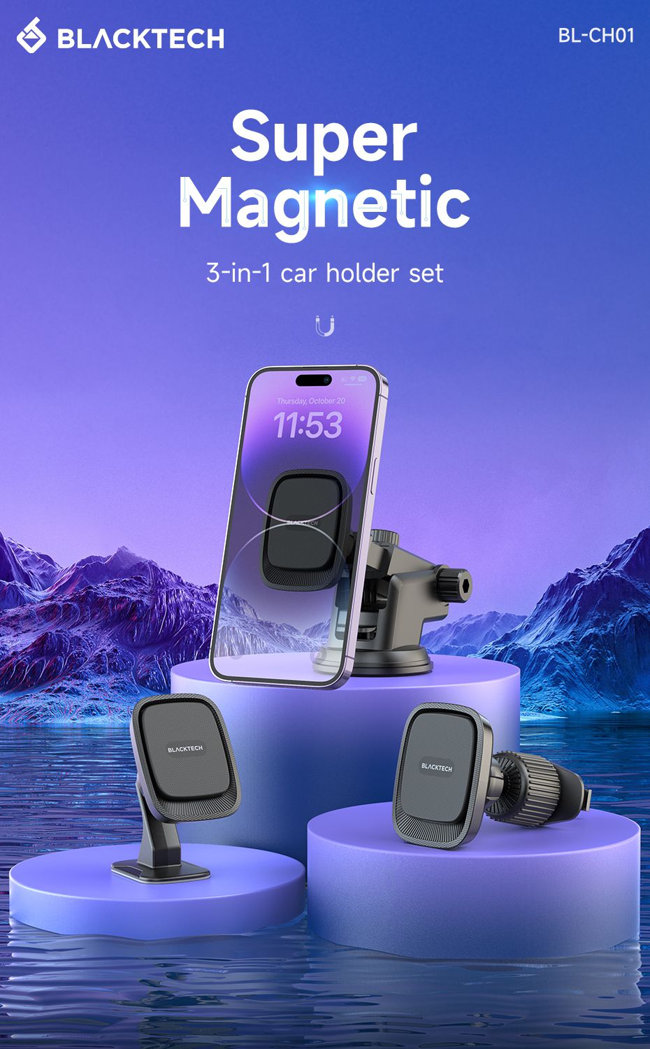 Versatile Mounting Options: The Blacktech 3 in 1 Car Phone Magnetic Holder is a versatile solution that offers three mounting options - dashboard, windscreen, and air vent. Choose the one that suits your preferences and vehicle layout.