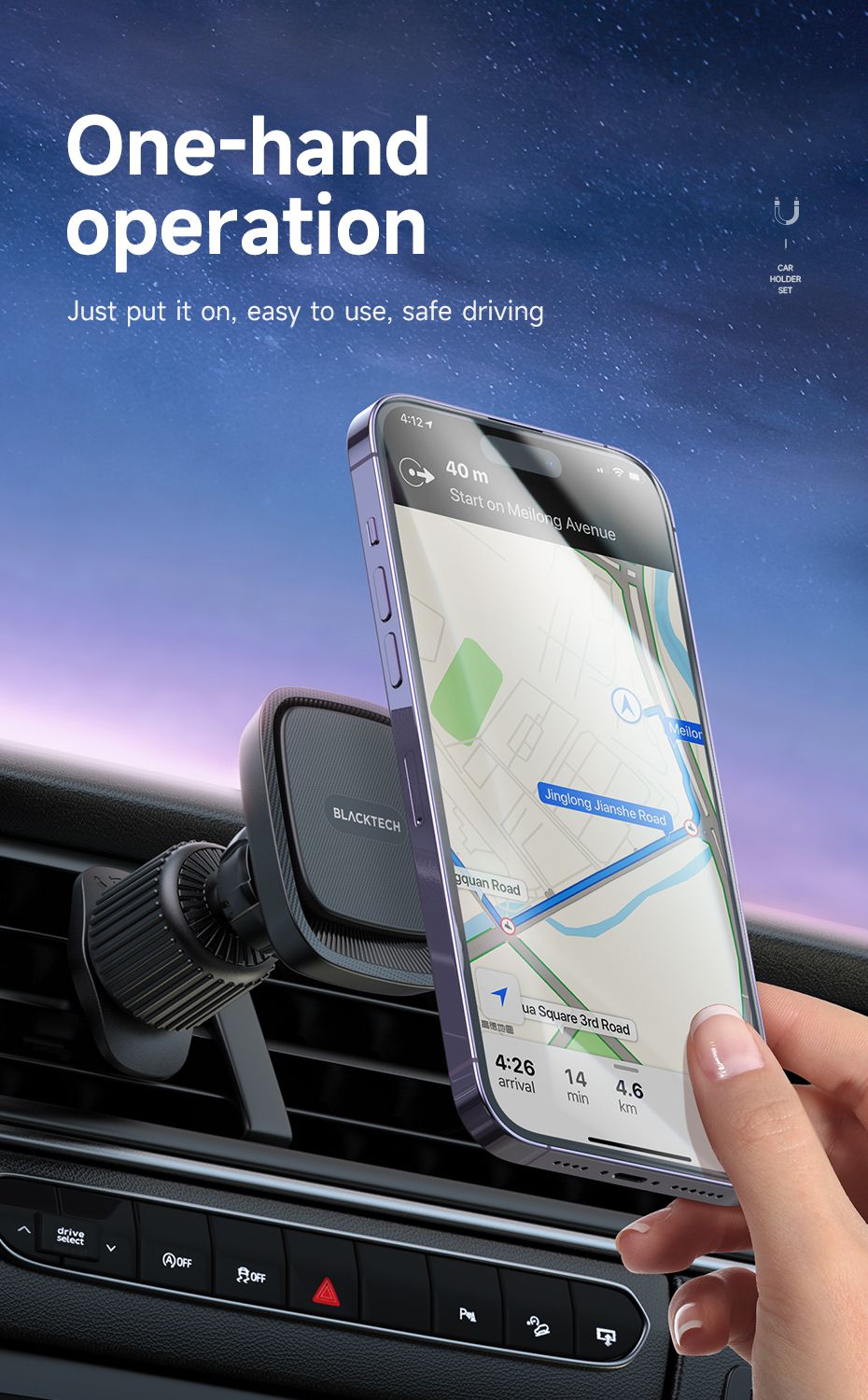 360-Degree Rotation: Enjoy customizable viewing angles with a 360-degree rotation feature. Adjust your phone to the perfect position for navigation, hands-free calling, or capturing scenic drives.