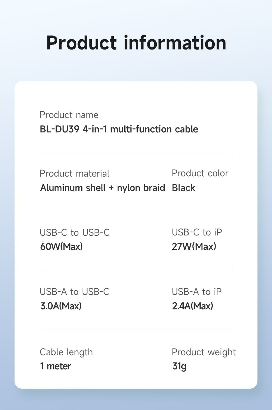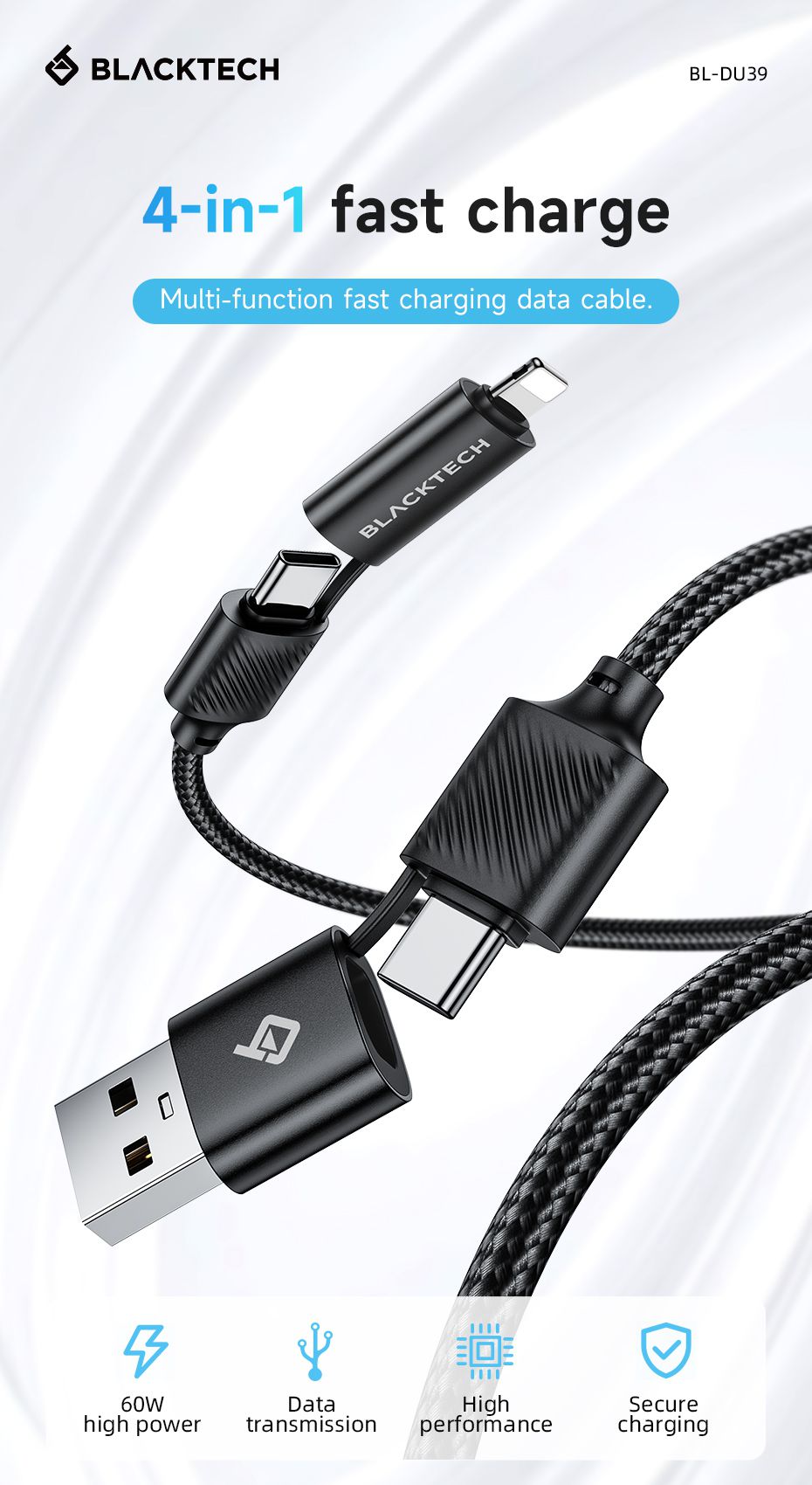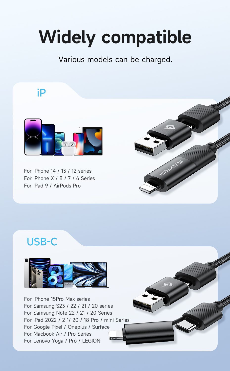 Blacktech 4-in-1 USB Type-C to USB-C Lightning Fast Charge Braided Cable