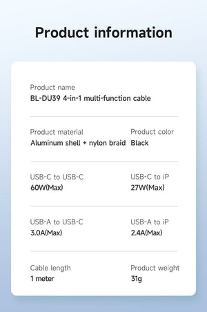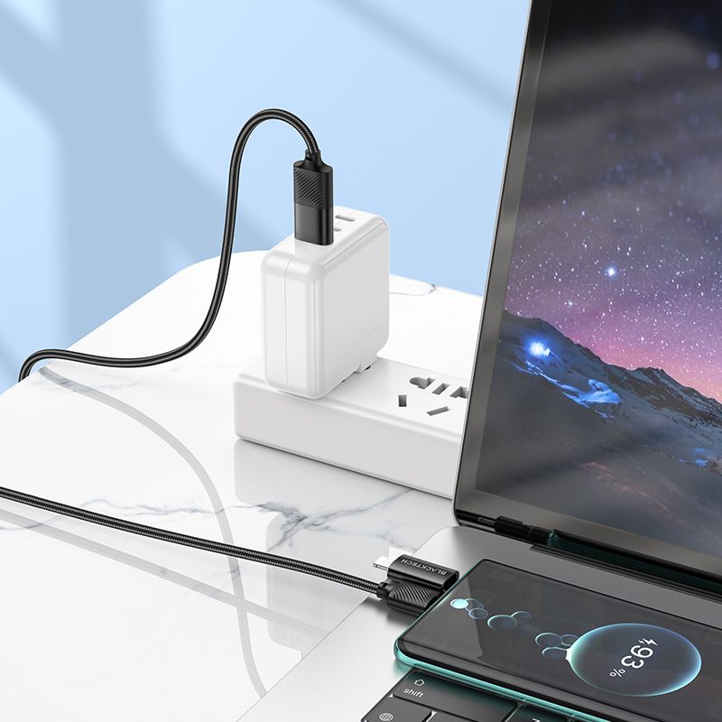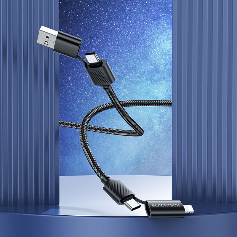 Triple Device Charging: The Blacktech 4-in-1 USB Type-C to USB-C Lightning Fast Charge Braided Cable by Baseus allows you to simultaneously charge three devices, offering unparalleled convenience.