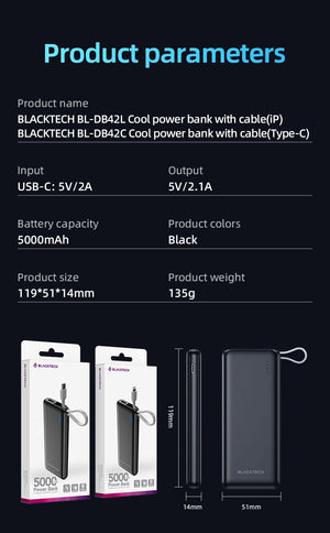 - Fast Charging On-the-Go: Blacktech's 5000mAh Mini Power Bank ensures quick and efficient charging for your devices, perfect for when you're out and about.