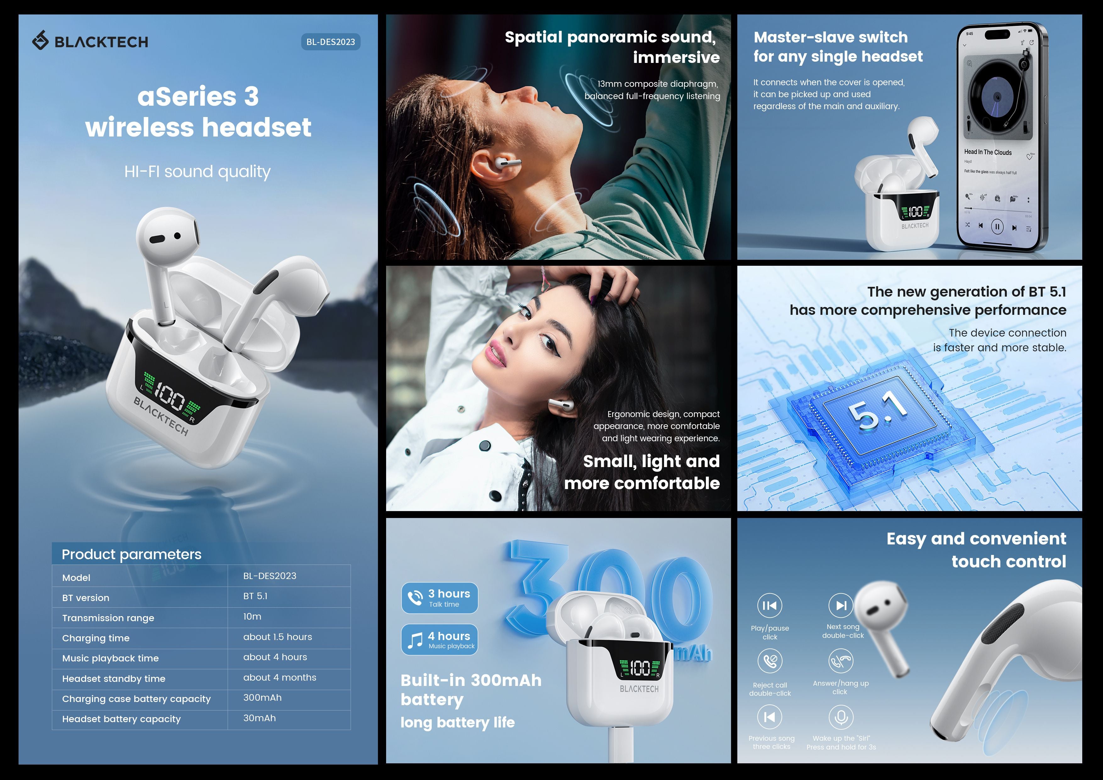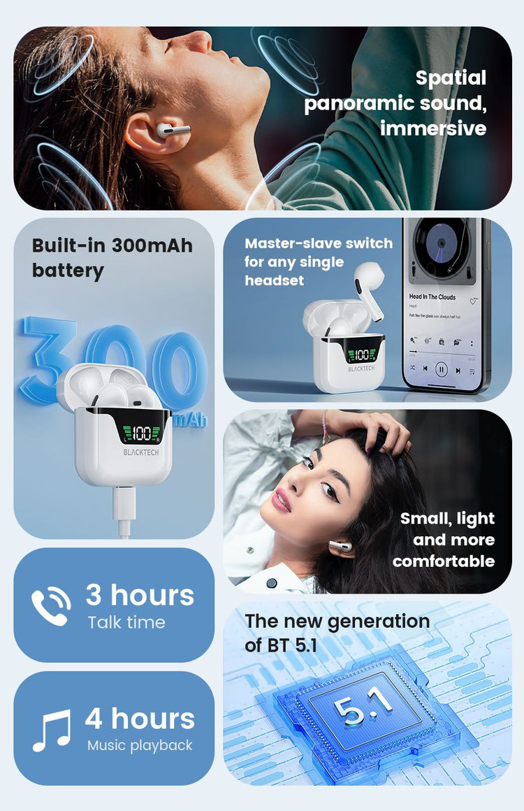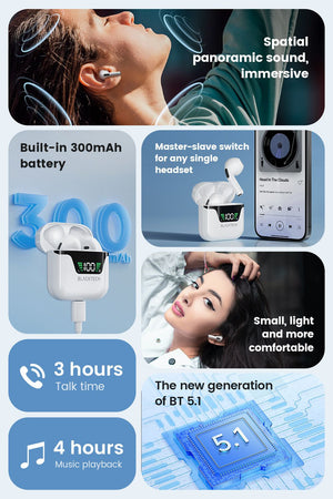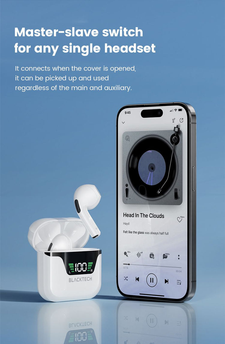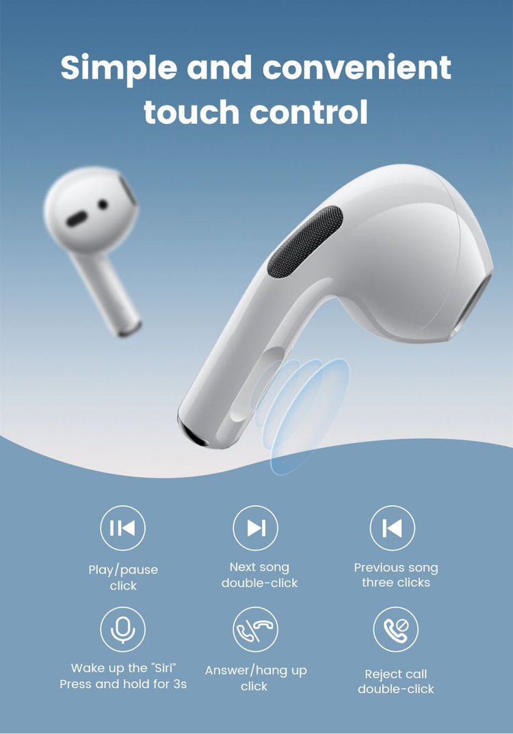 Intelligent Touch Operation: Enjoy the convenience of intelligent touch controls, including master-slave switching, Siri activation, and modifying pairing names. Effortlessly manage your earphones with a simple touch.