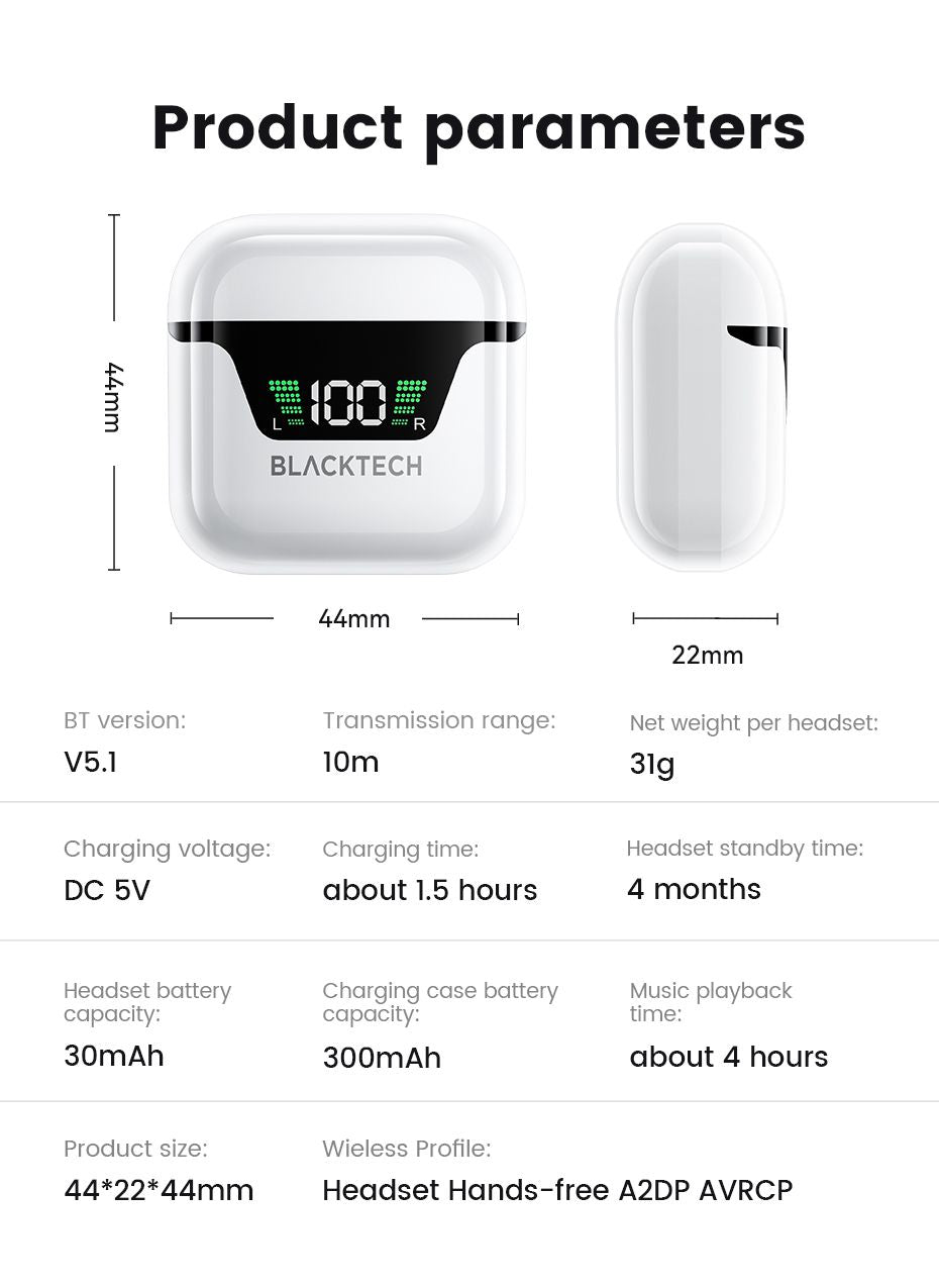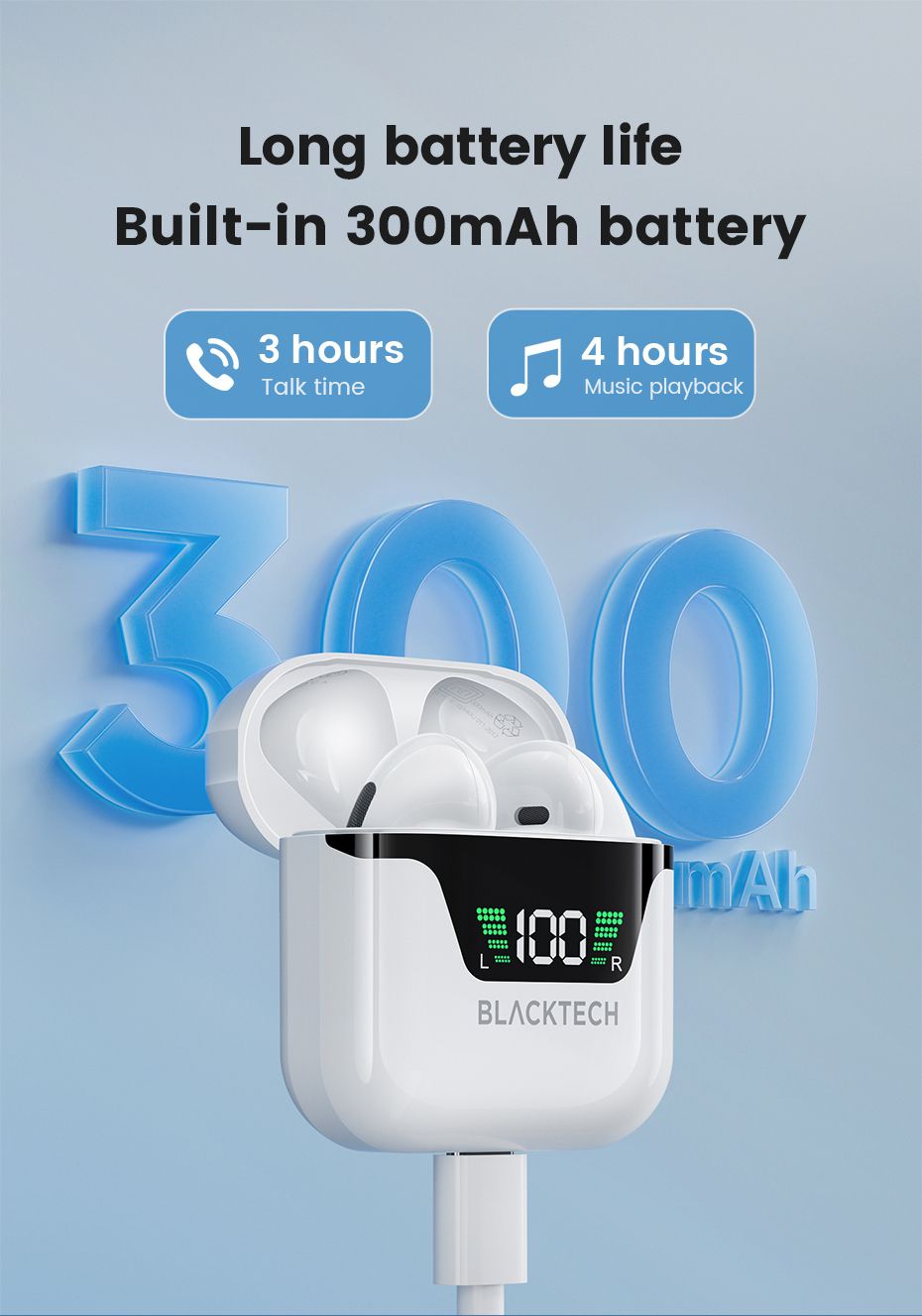 Extended Battery Life: The charging compartment's 350mAh battery provides up to 4 hours of talk or music time, with an impressive 200 hours of standby time. Keep the music playing longer!