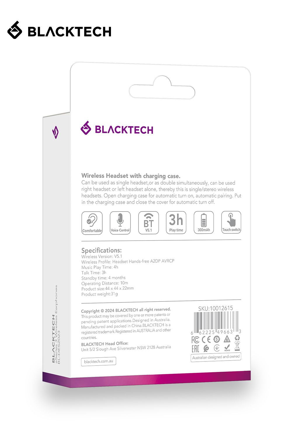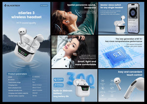 Blacktech aSeries 3 Bluetooth Wireless Hi-Fi Earphones Handsfree LED Display