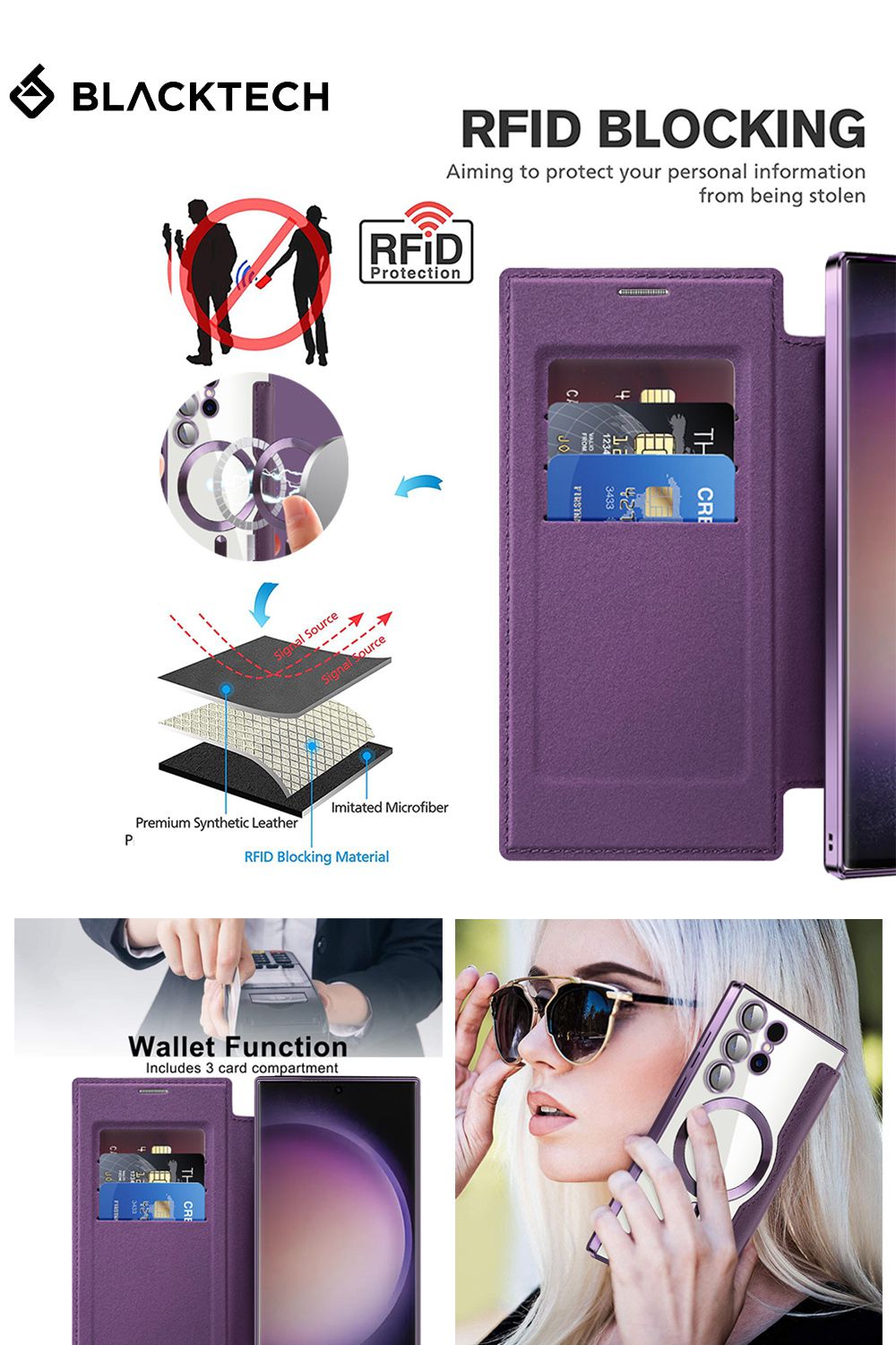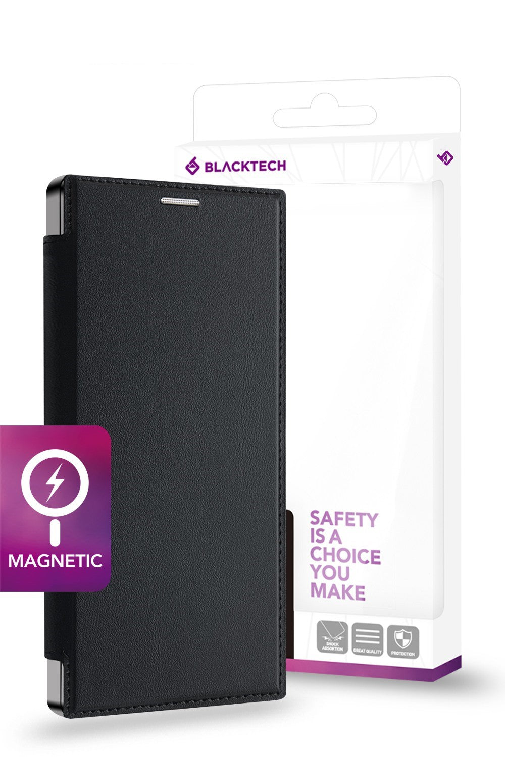 Luxurious Leather Design: The Blacktech Leather Lux Magnetic Flip Case features a luxurious leather design, combining style and sophistication.