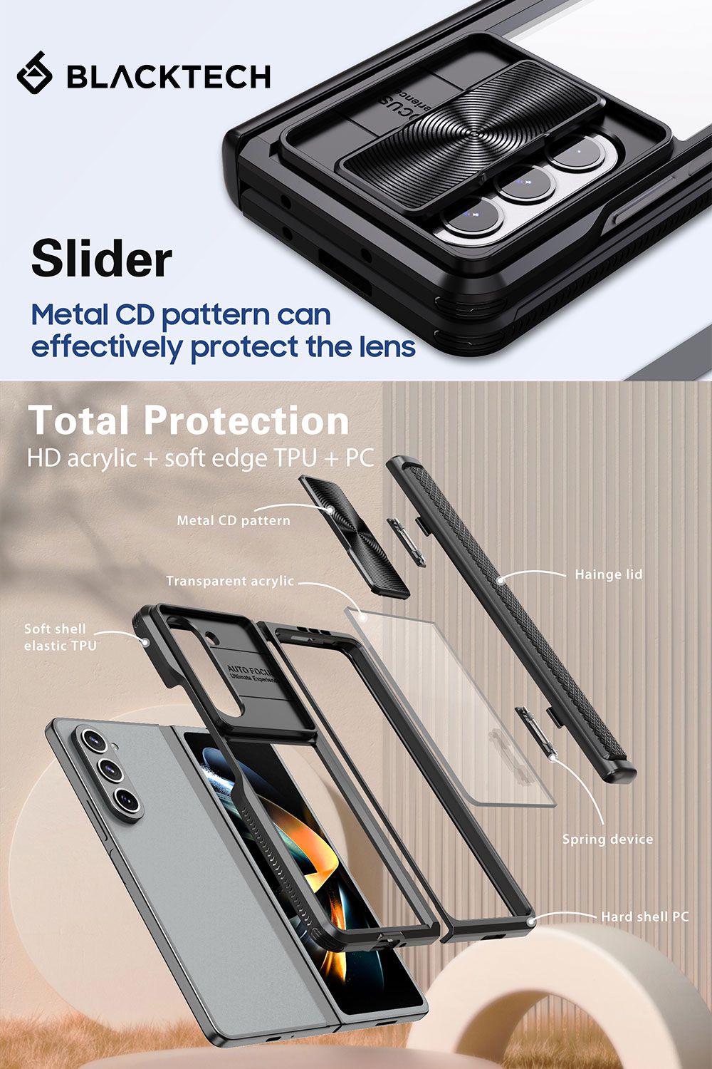 Blacktech Samsung Galaxy Z Fold 6 Hybrid Protective Case with Camera Slider