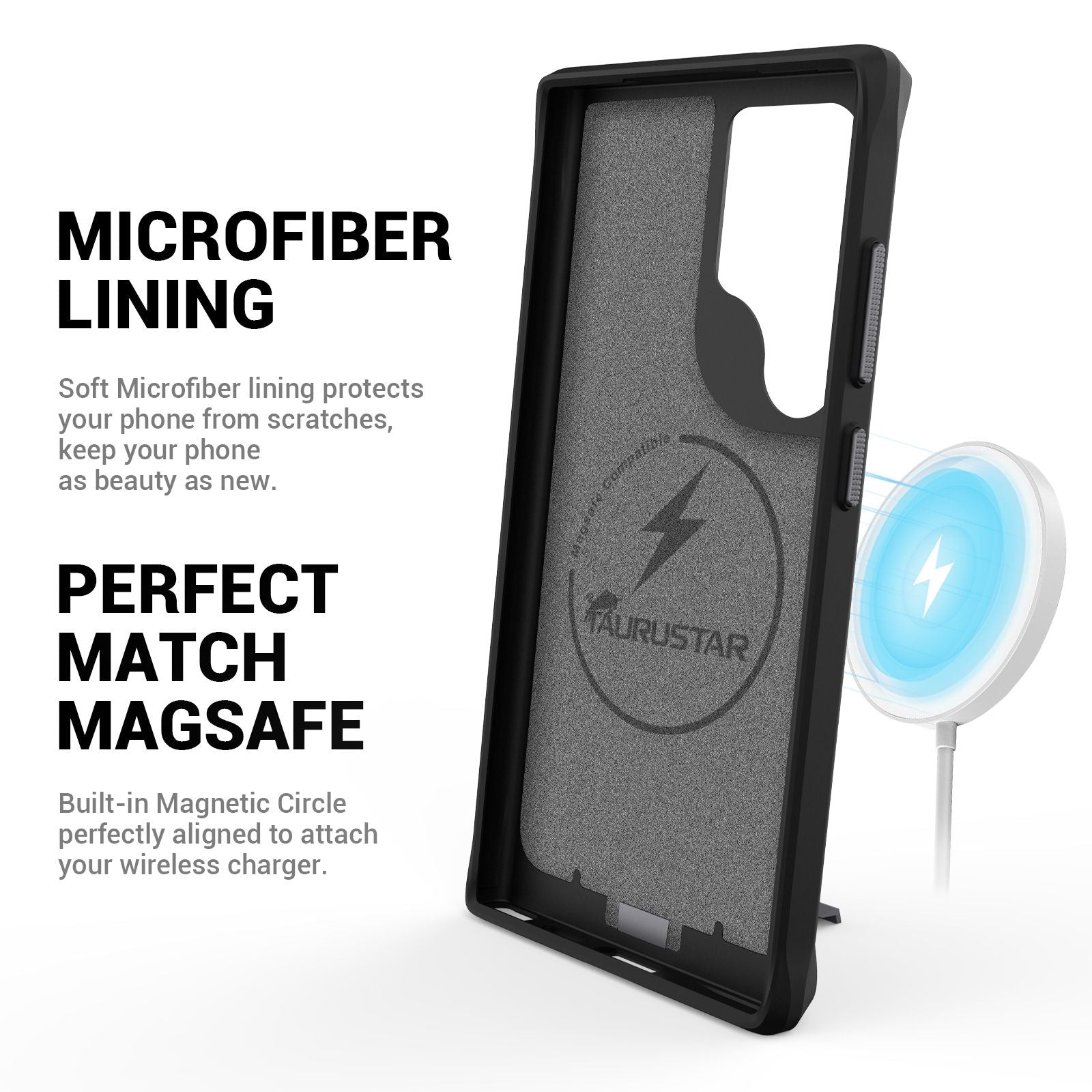 Micro Lux Magnetic Magsafe Rugged Case: The Blacktech Samsung S25 Micro Lux Case combines micro design elements with Magsafe compatibility, providing rugged and shockproof protection for your device.
