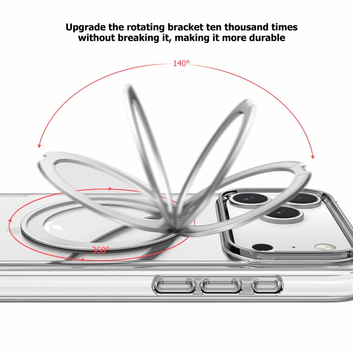 360Β° Rotating Ring Stand: Adjustable ring bracket rotates smoothly, allowing comfortable hands-free viewing in both portrait and landscape modes.