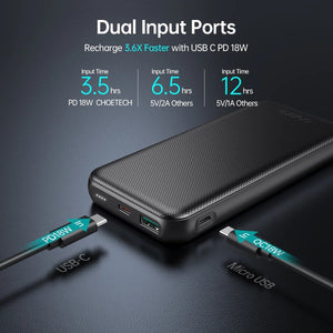 High-Speed Charging: Choetech 10000mAh Ultra Slim Power Bank offers USB-C power delivery input and output, delivering an 18W max output that can quick charge your iPhone from 0% to 50% in just 30 minutes, all while preserving battery health. It also recharges itself in a mere 3.5 hours. (Note: Charging is not available during the recharging process.)