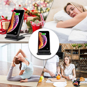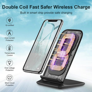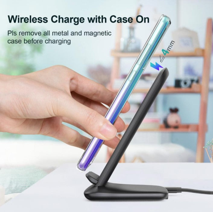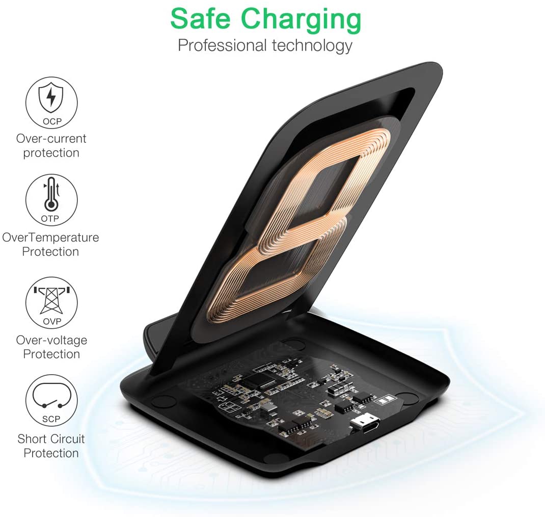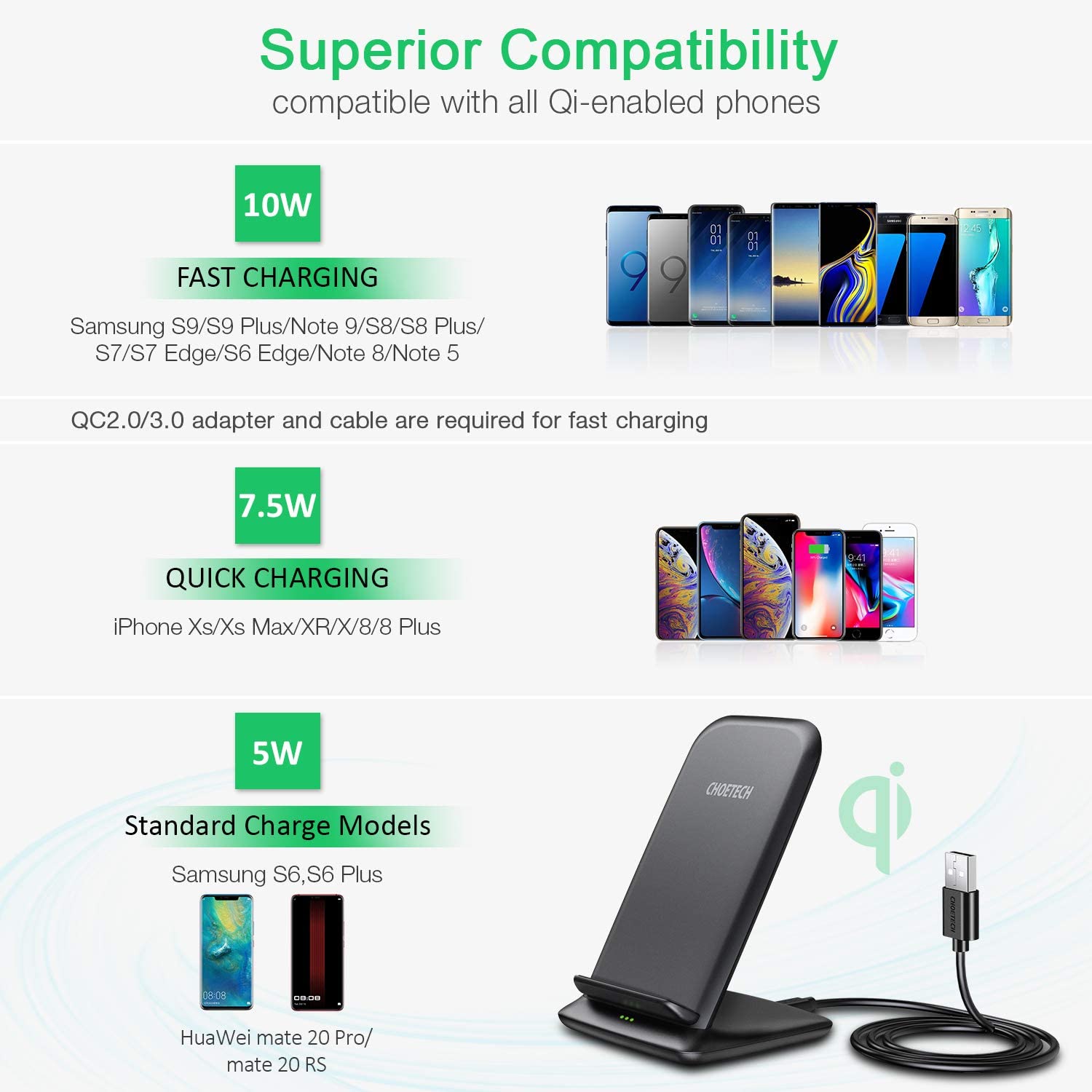 10W QC3.0 Qi Wireless Charging Stand: Supports 7.5W fast charging for iPhone models and 10W for Samsung Galaxy devices (requires QC2.0/QC3.0 adapter). Also provides 5W charging for other Qi-enabled devices.