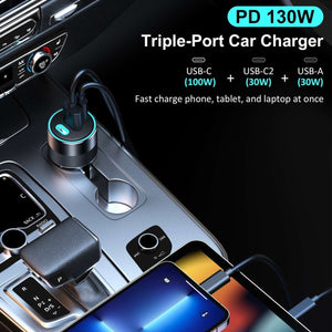 High-Speed Charging On-the-Go: Choetech 130W 3 Port USB-C Car Charger ensures blazing-fast charging for your devices, making it the ideal travel companion for your car journeys.