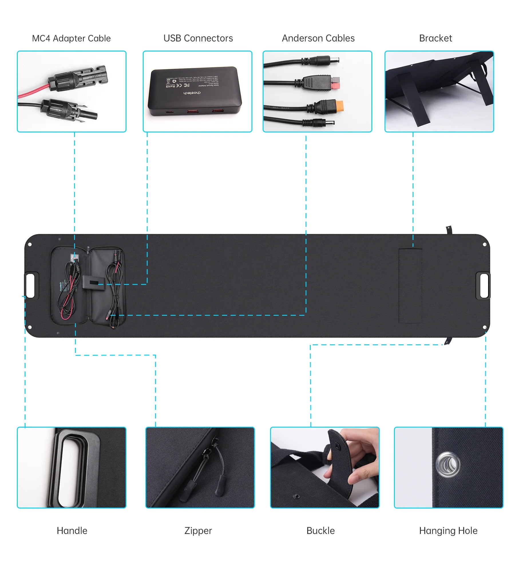 Our 200W Solar Charger includes 10 DC connectors, which is compatible with most solar generators on the market includingΒ