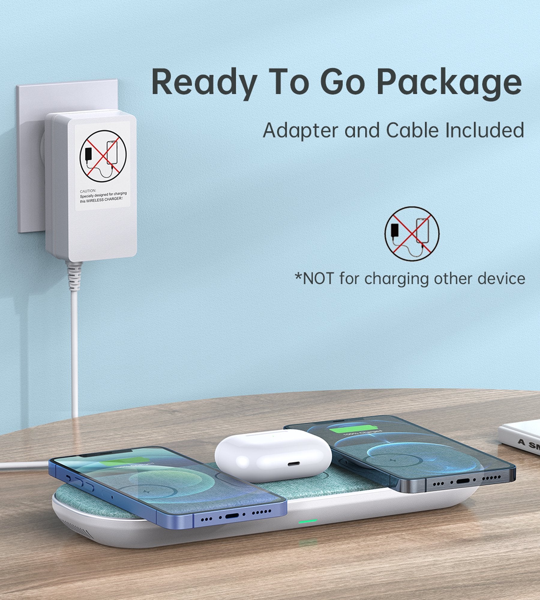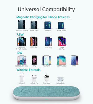 Stylish Design: Features a 3-in-1 magnetic wireless charging pad with an anti-slip fabric surface in green, avoiding intermittent charging. Provides an elegant and classy look, suitable for gatherings with friends or family.