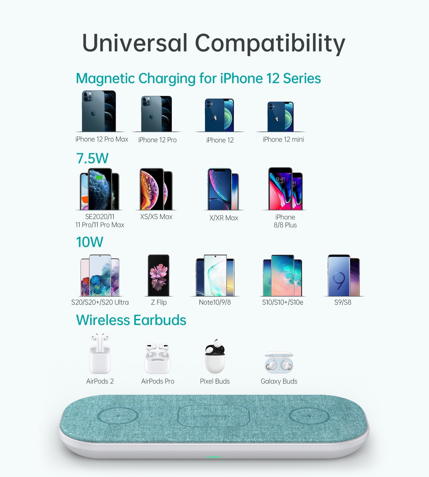 Mag-Safe Compatibility: Offers fast MagSafe charging and precise magnetic positioning for iPhone 12 series. Compatible with MagSafe phone cases and AirPods with wireless charging cases, as well as other Qi-enabled devices.