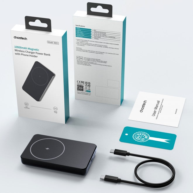 Magsafe Wireless Charging: Choetech 18W 10000mAh 3 in 1 Power Bank supports Magsafe wireless charging, providing a convenient and cable-free charging experience for your compatible devices.