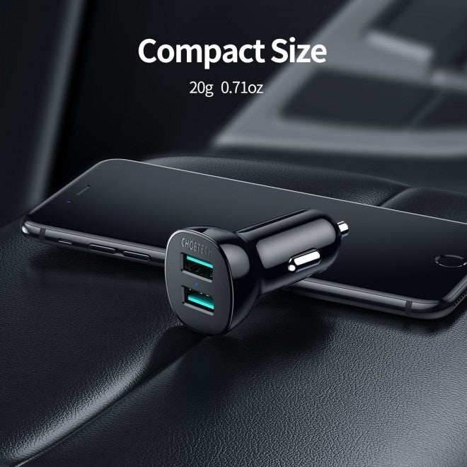 Choetech 36W USB Car Charger Adapter Dual Port Quick Charge