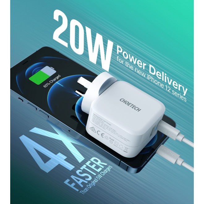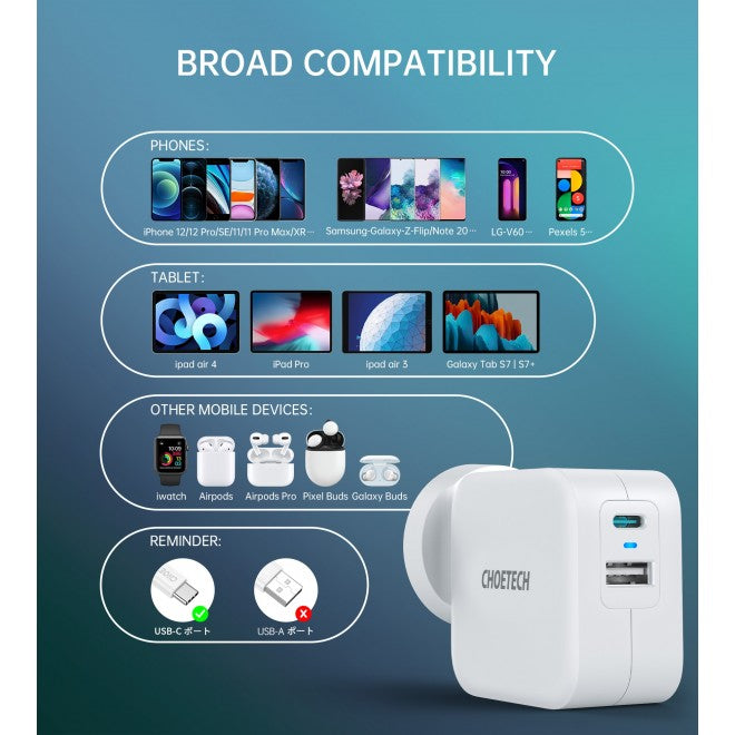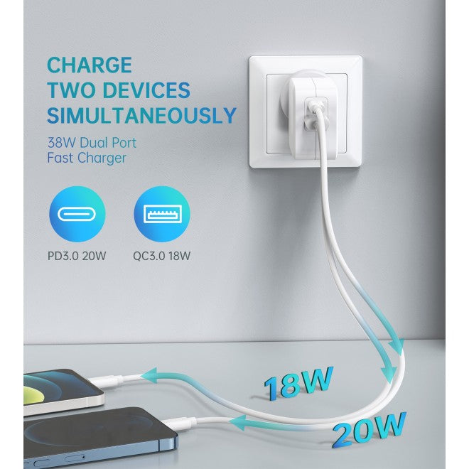 Choetech 38W Dual Port USB + USB-C Type-C Wall Charger