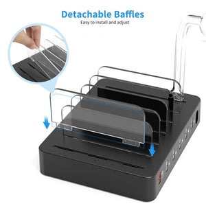 6 Ports for Multi-Device Charging: With six USB ports, including one QC 3.0 port, this charging station allows you to power up multiple devices simultaneously. Charge smartphones, tablets, smartwatches, and more from a single, centralized hub.