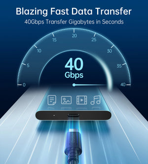 40Gbps Superfast Data Transfer and 100W Charging Power: Experience lightning-fast data transfer at 40Gbps on devices with USB4/Thunderbolt3/4/USB-C interfaces. This cable supports Power Delivery 3.0 charging, allowing for rapid charging up to 100W. It's fully USB-C compatible for all generations and devices.
