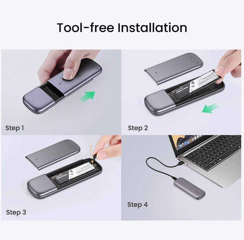 Durable Aluminum Alloy Casing: Built to last, the Ugreen M.2 NGFF SSD to USB-C Case Enclosure features an aluminum alloy casing. This not only adds durability to the enclosure but also provides a premium and sophisticated feel.