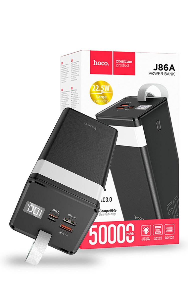 Ultra-Fast Charging: The Hoco 22.5W 50000mAh Powermaster Power Bank (J86A) ensures ultra-fast charging at 22.5W for devices compatible with QC3.0 and PD3.0. Experience rapid charging for your devices.
