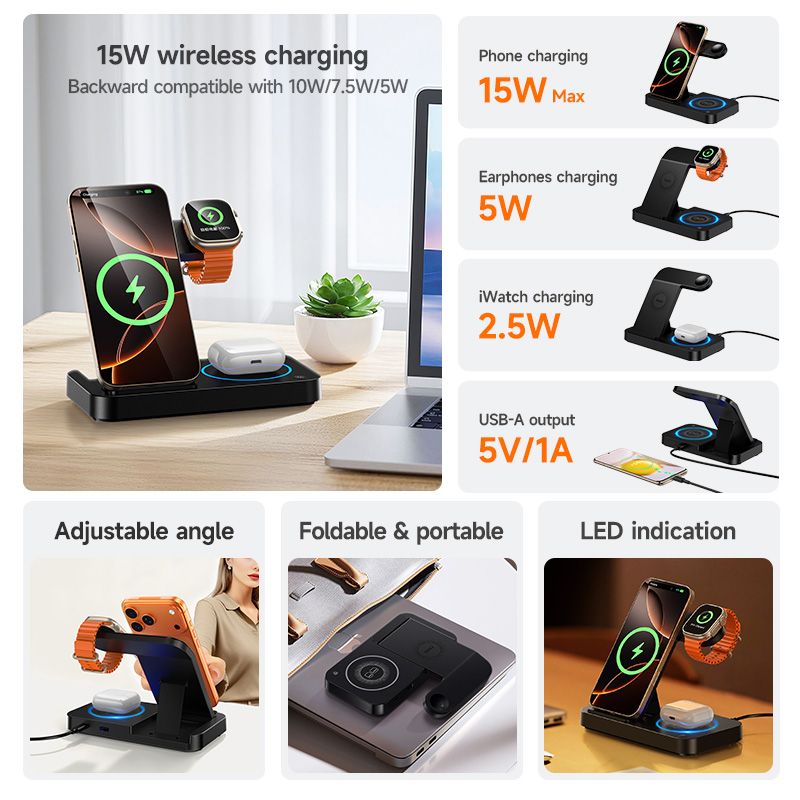 Multi-Device Dock: Dedicated charging areas for organised and clutter-free setup