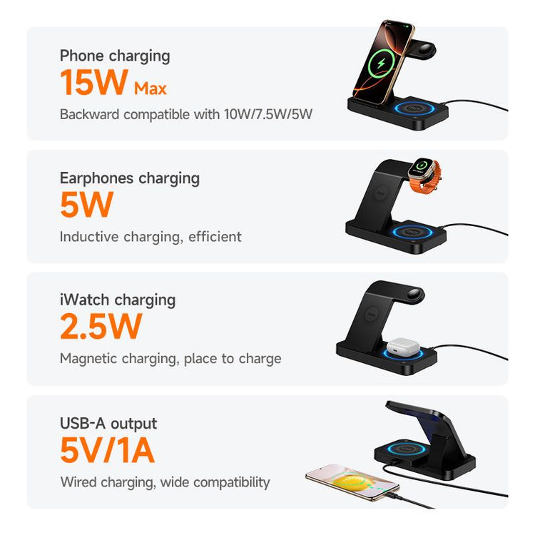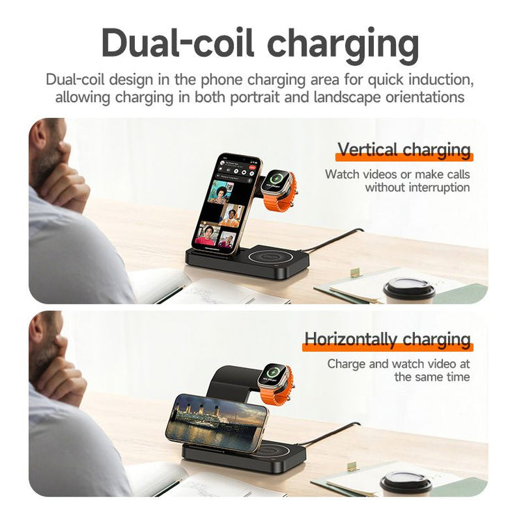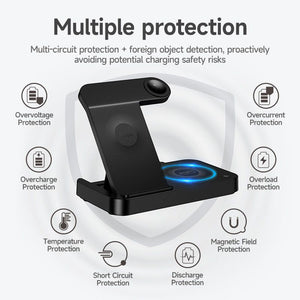 4-in-1 Wireless Charging Station: Charge phone, smartwatch, earbuds, and more simultaneously