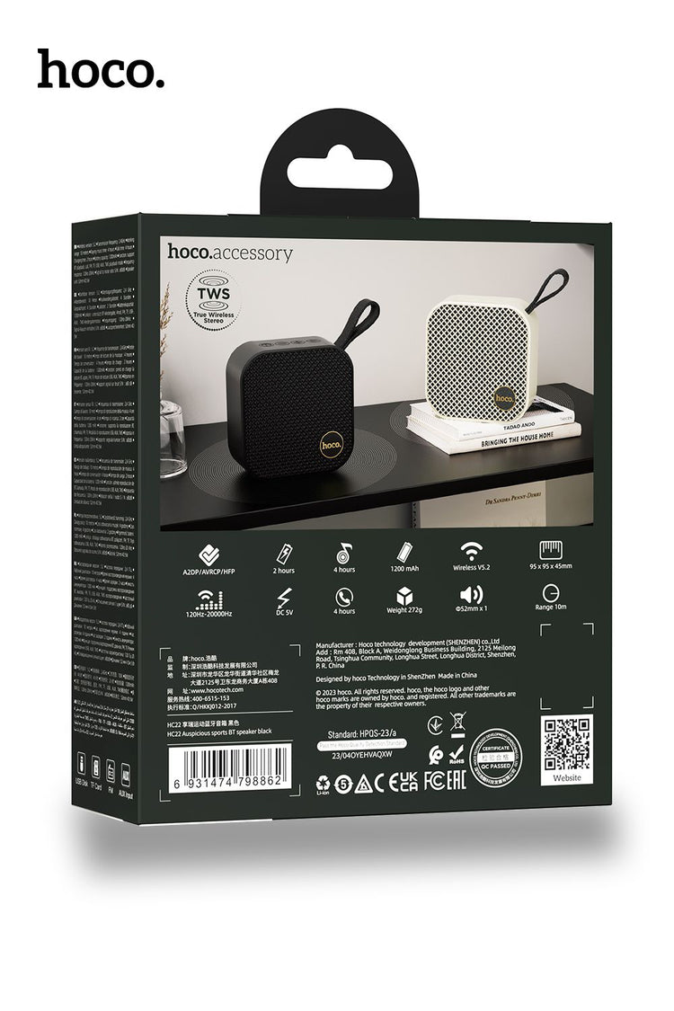Bluetooth 5.2 Connectivity: The Hoco HC22 Auspicious Portable Speaker features advanced Bluetooth 5.2 technology, ensuring a reliable and efficient wireless connection for high-quality audio streaming.