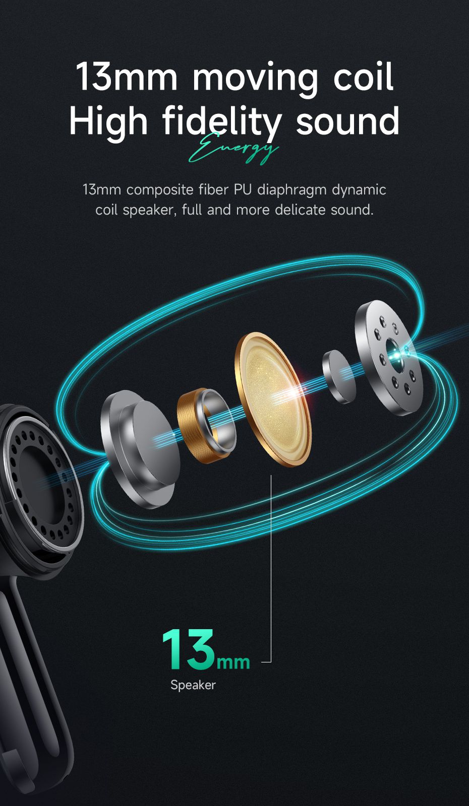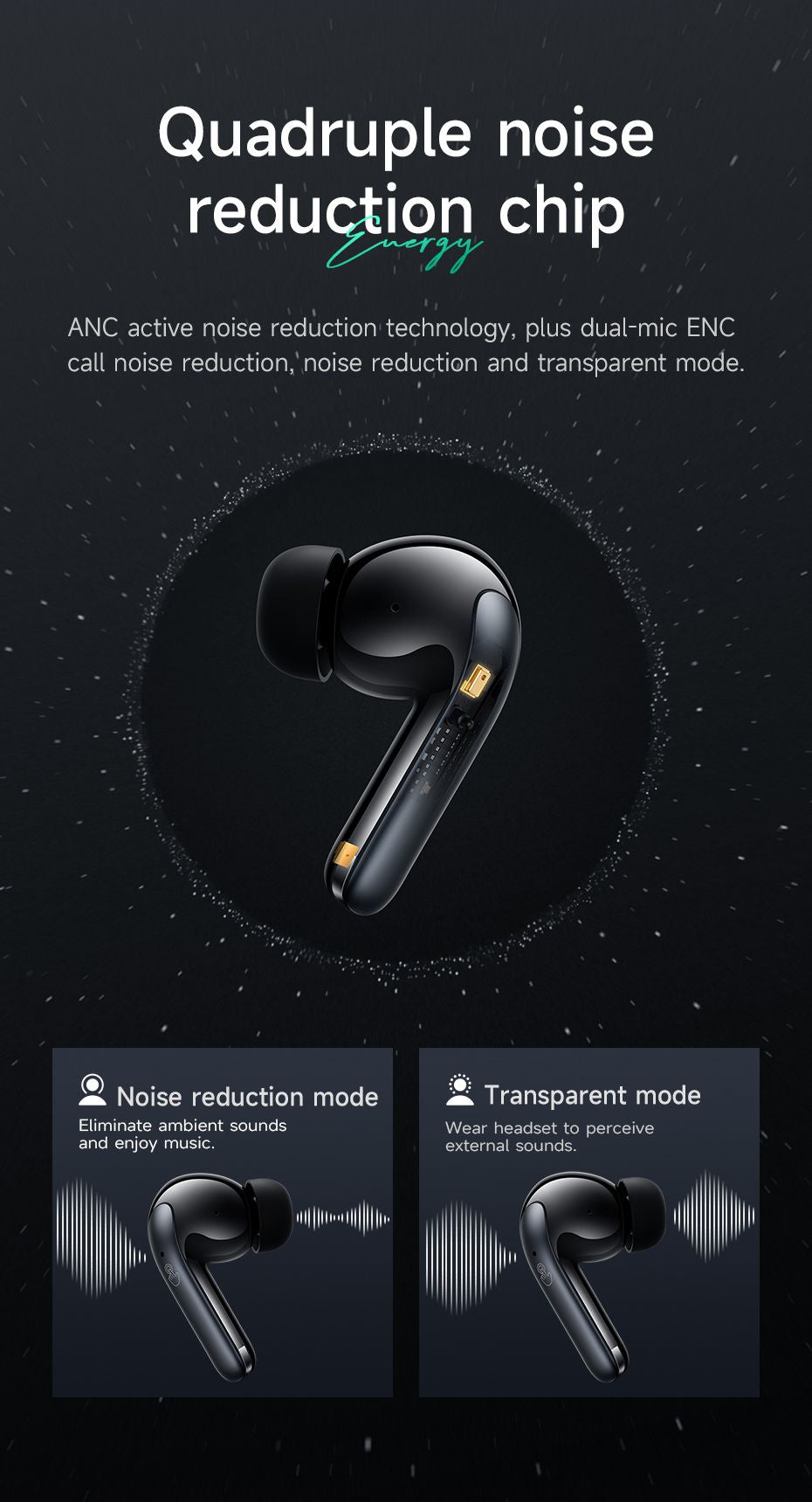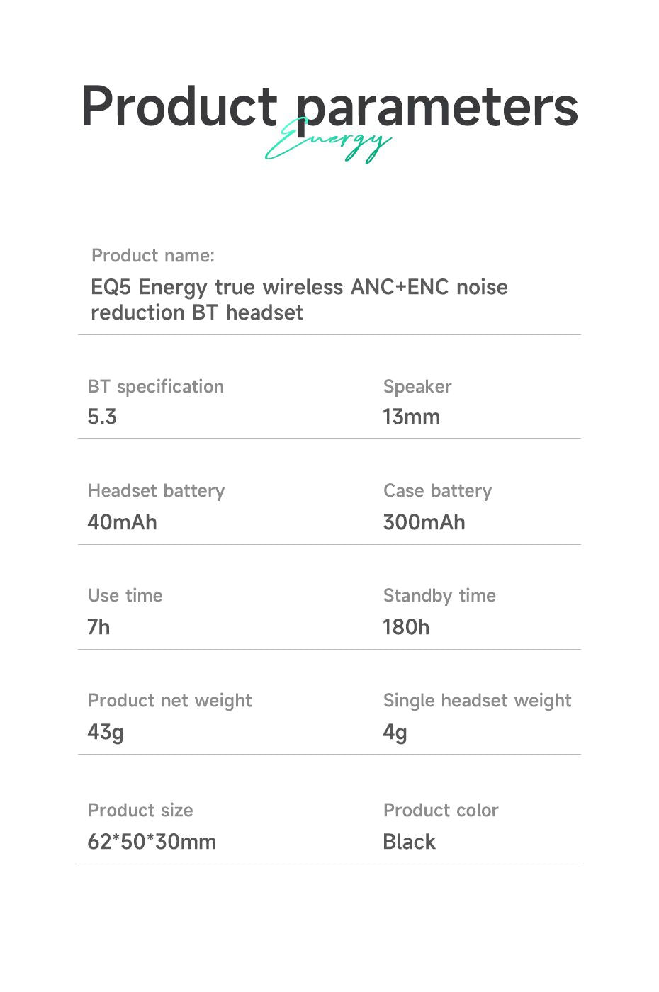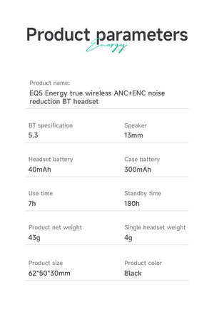 Innovative Full Curved Design: The EQ5 earbuds feature an innovative full curved design that combines comfort and style. The streamlined design not only enhances the earbuds' aesthetics but also ensures a secure and comfortable fit for extended wear.