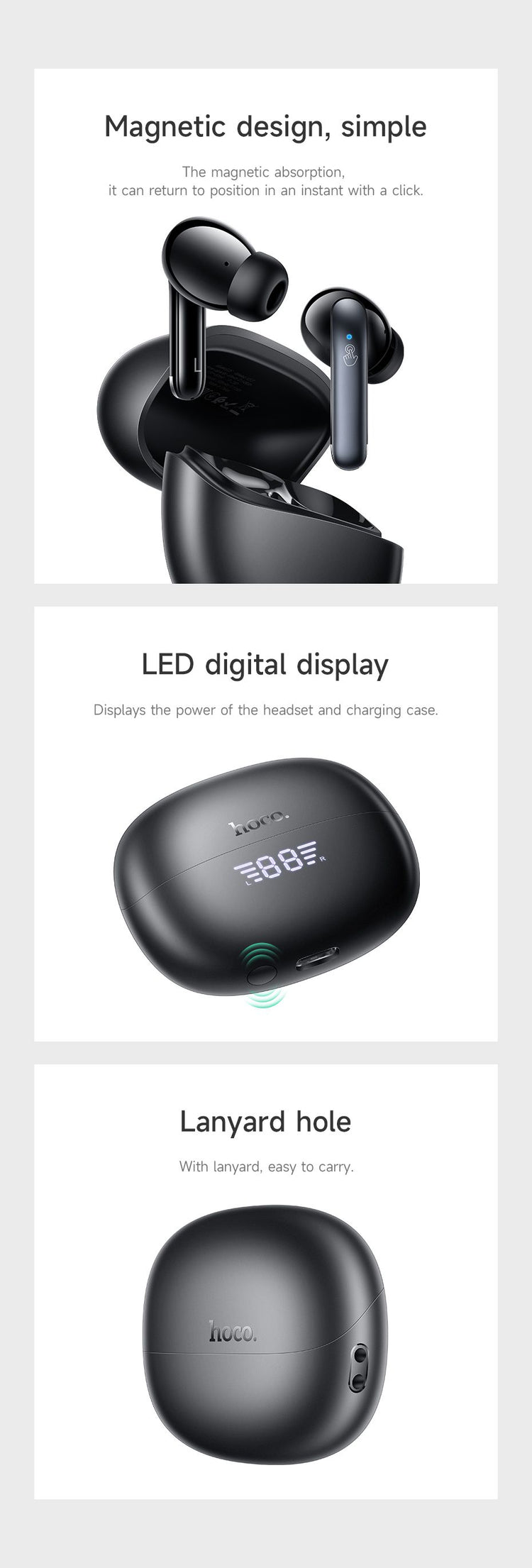 Convenient LED Digital Display: Keep track of your earbuds' battery status with the LED digital display on the case. Stay informed and ensure your earbuds are always ready for use.