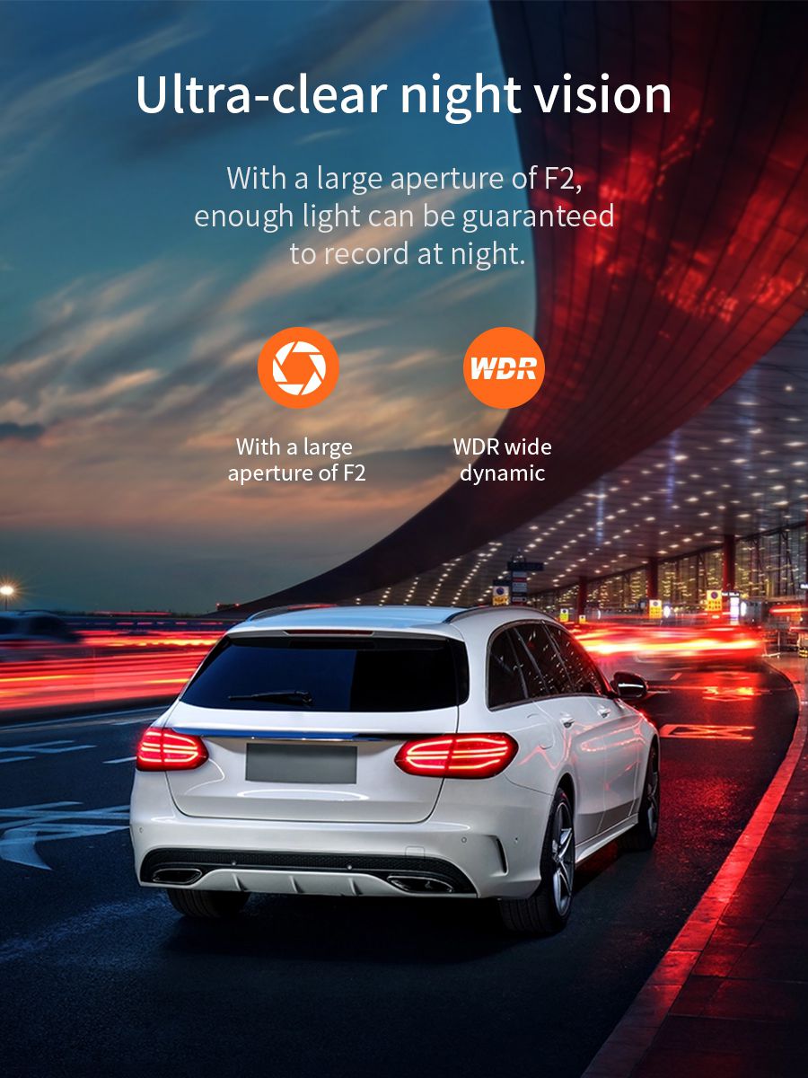Seamless Front and Rear Recording: Experience seamless front and rear recording, allowing you to capture events from both perspectives without missing a moment. The synchronized recording provides a complete and detailed account of your journeys.
