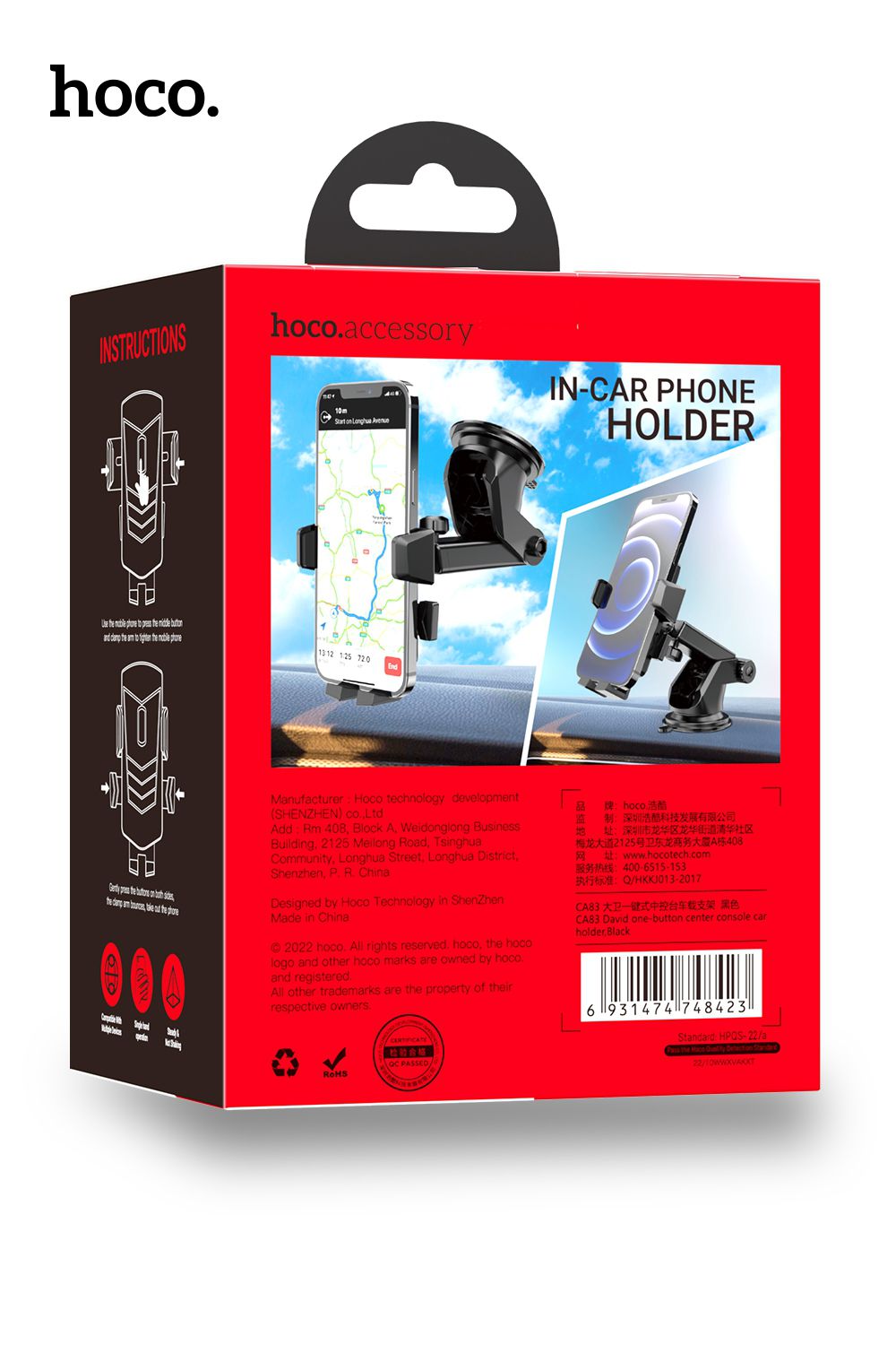 One-Touch Operation: The Hoco CA83 Car Holder features a convenient one-touch operation, making it easy to secure your phone with a simple touch.