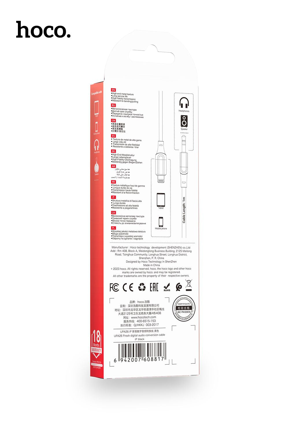High-Quality Audio Transmission: Enjoy clear and reliable audio transmission with the Hoco DAC cable. Whether you're listening to music, podcasts, or engaging in calls, experience top-notch sound quality.