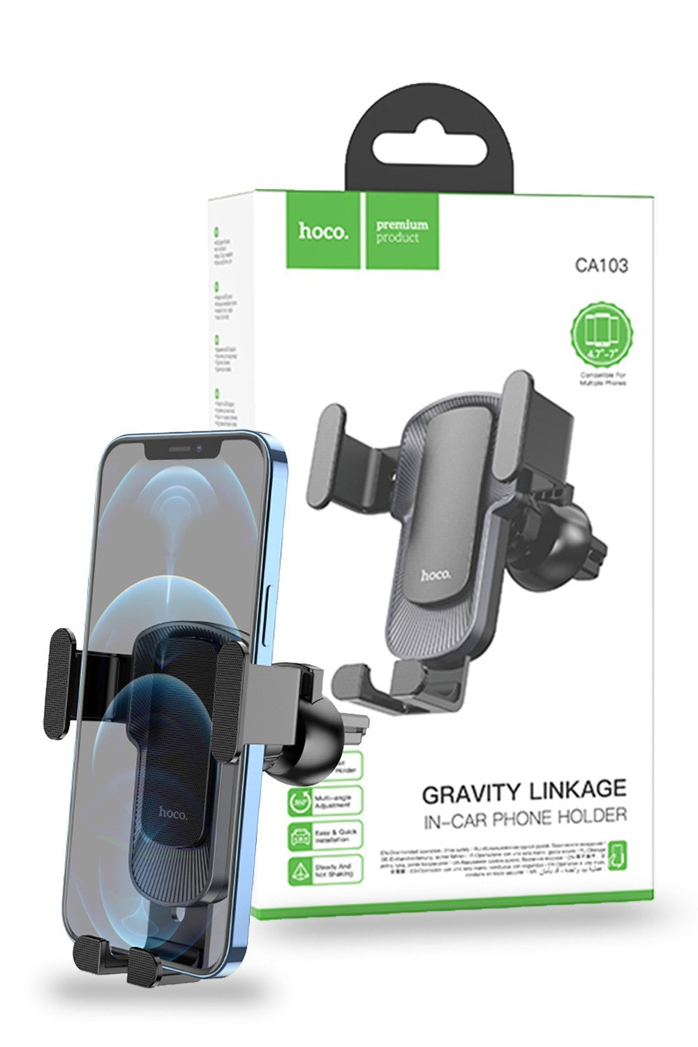 Secure Gravity Mechanism: The Hoco CA103 Gravity Car Holder utilizes a secure gravity mechanism, ensuring a firm grip on your phone for hands-free GPS navigation, phone calls, and music playback.