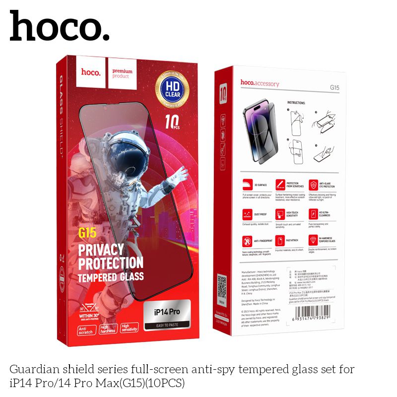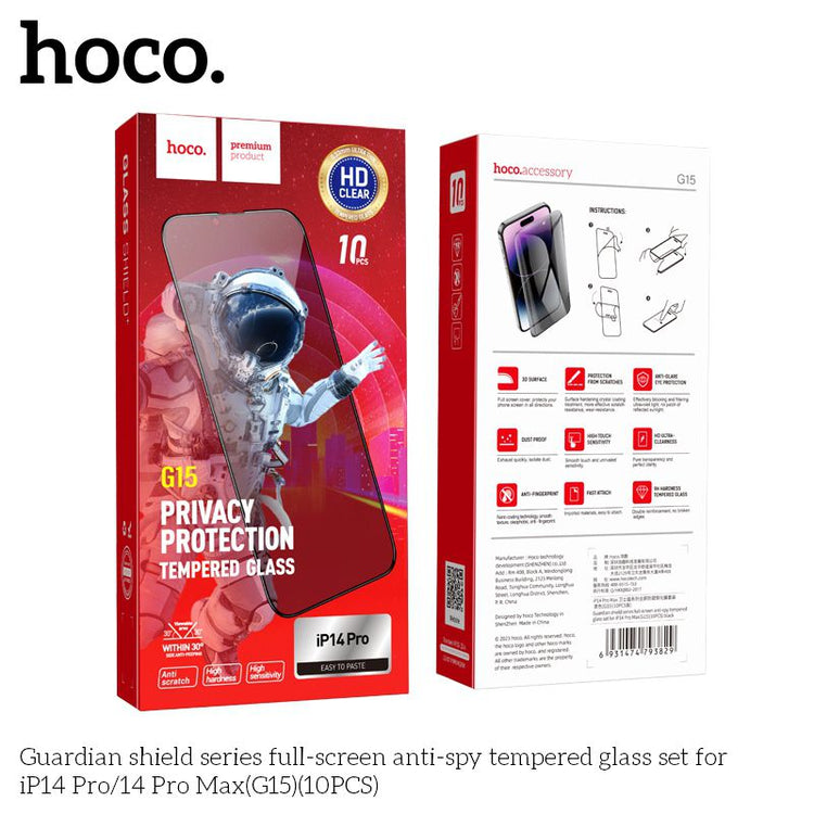 Hoco iPhone 14 Pro Max 9D Privacy Tempered Glass Full Screen Protector G15