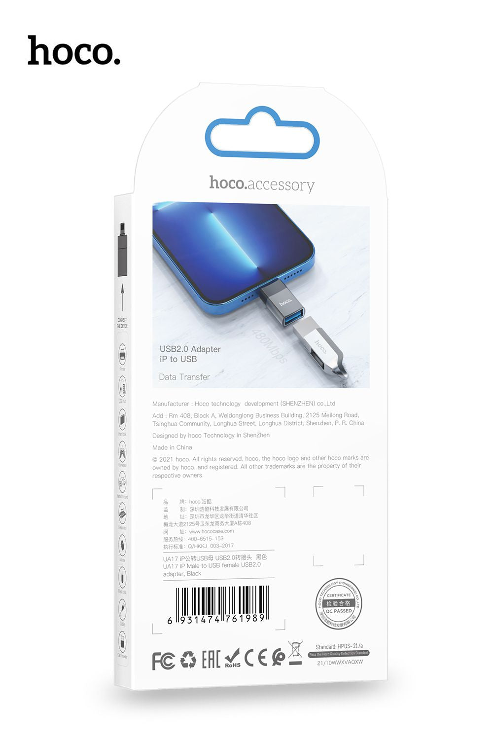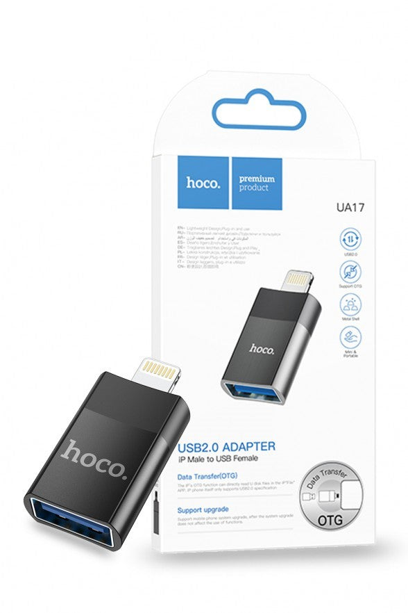 Effortless Data Transfer: Hoco's UA17 Lightning to USB OTG Adapter provides a convenient solution for seamless data transfer between your Lightning-enabled Apple devices and USB peripherals.