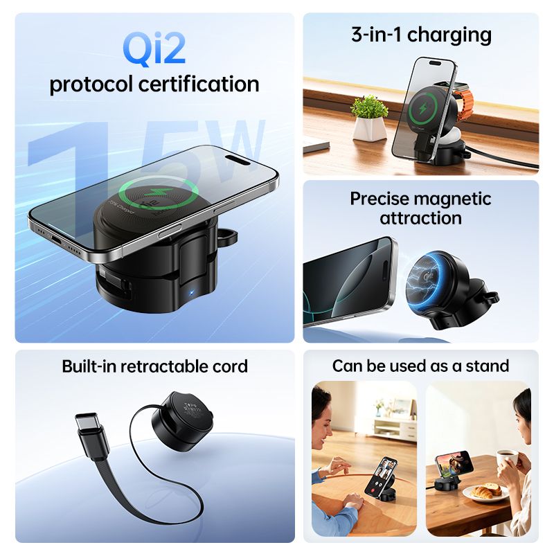 Wide Compatibility: Works with iPhone (MagSafe/Qi2), Android, smartwatches, and wireless earbuds