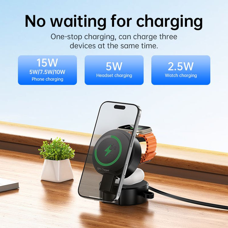 3-in-1 Wireless Charging Station: Charge phone, smartwatch, and earbuds simultaneously