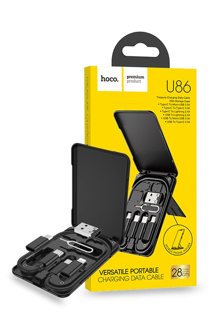 Comprehensive 6-in-1 Kit: Hoco's U86 Treasure Kit is your all-in-one solution, featuring a variety of adapters and cables to meet your on-the-go needs, ensuring you stay connected and charged wherever you are.