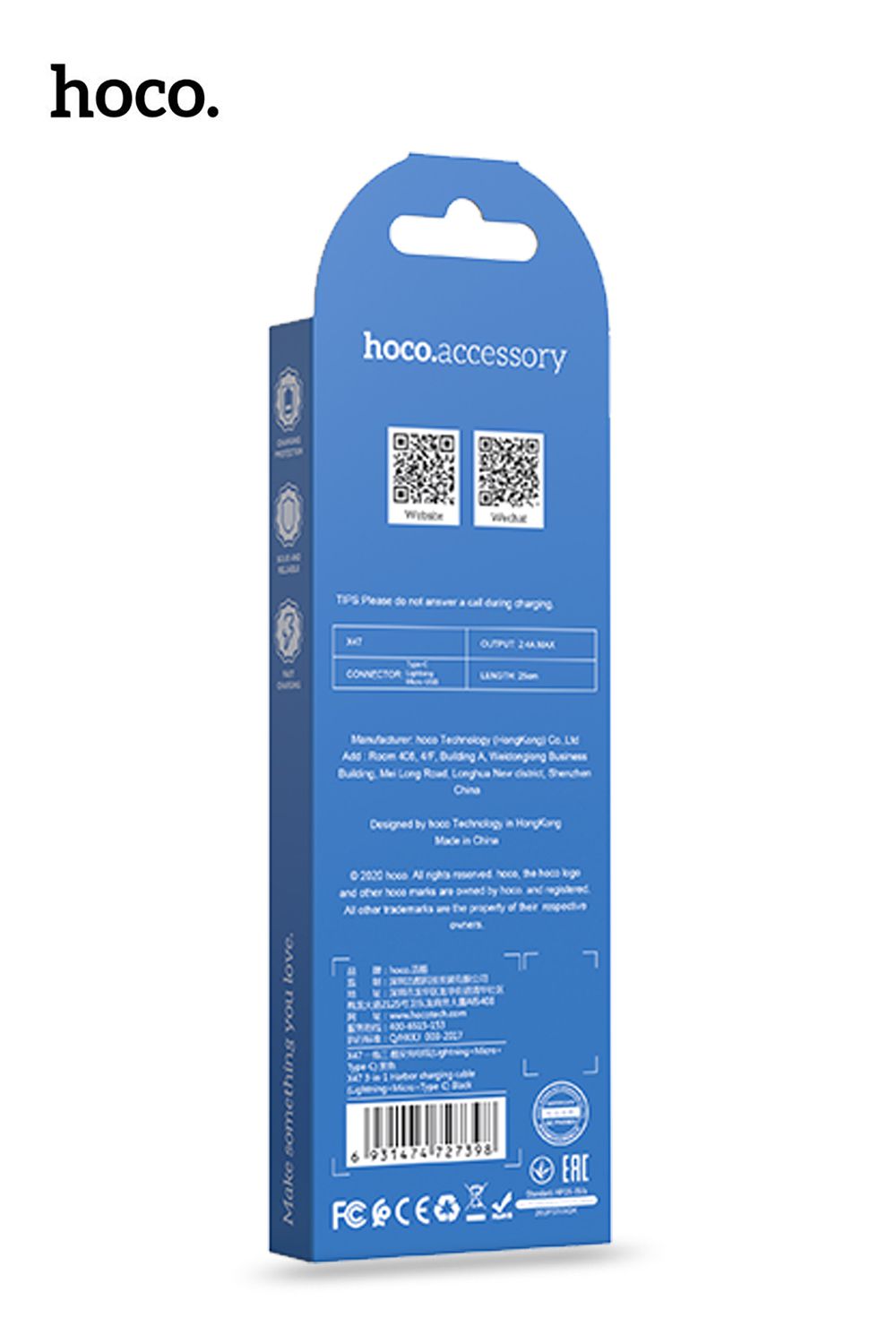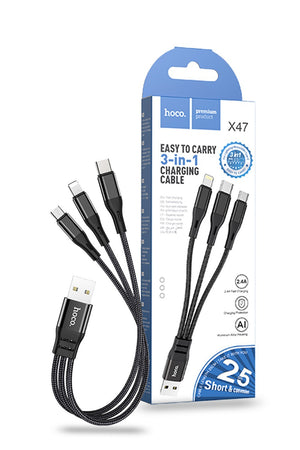 Ultra-Convenience: Hoco's X47 cable offers ultra-convenience with its 3-in-1 design, featuring lightning, USB-C, and micro-USB connectors in a single cable. Perfect for users with multiple devices.