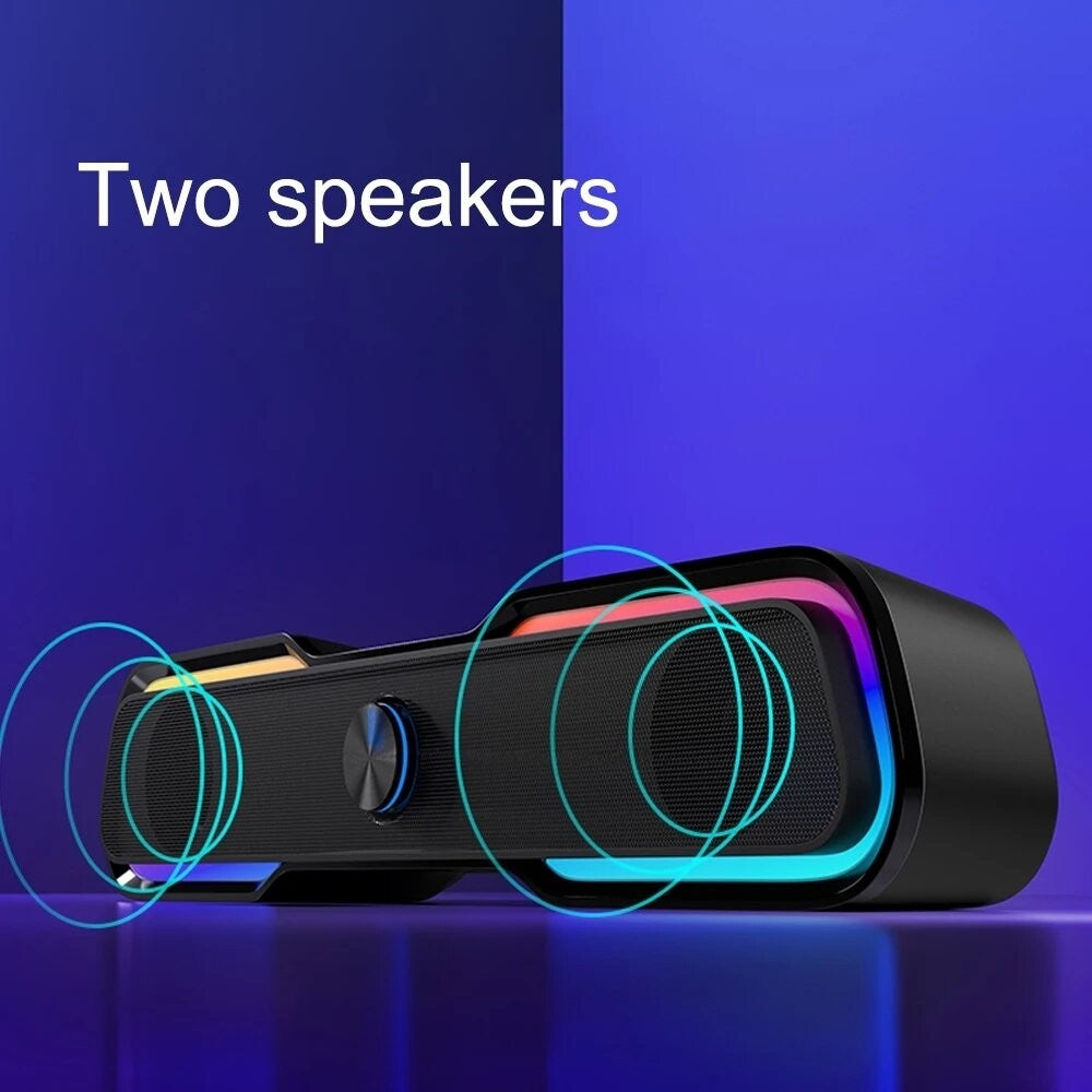 - Dynamic RGB Lighting: Enhance your gaming and movie-watching experience with vibrant LED lighting. Easily control the lighting with a 2-second press of the button on the speaker.