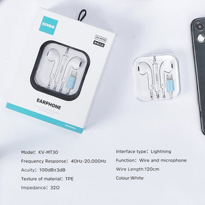 Kivee Wired Lightning Earphones HiFi Stereo with Mic 1.2m