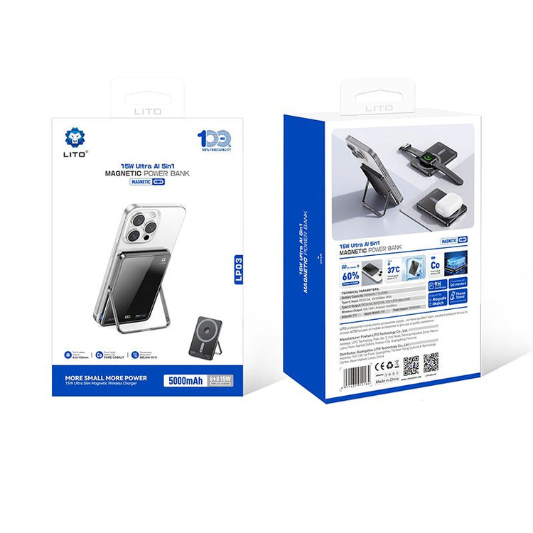 LITO 5000mAh Qi2 15W Magnetic Power Bank 5in1 MagSafe Compatible Fast Charging LP03