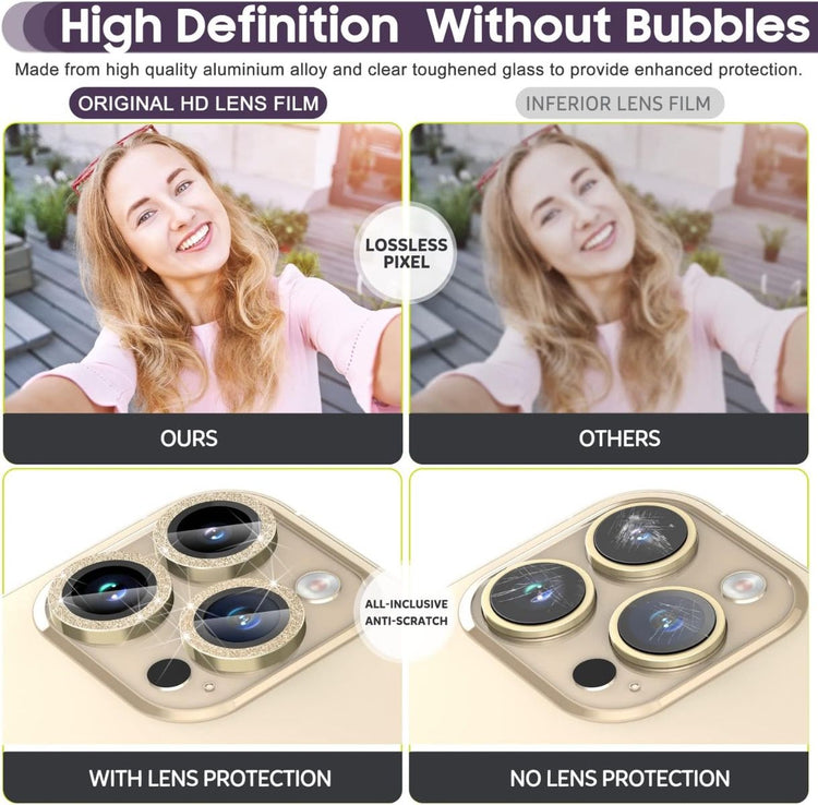 Aluminium Alloy Protection: Crafted from premium aluminium alloy to safeguard your iPhone camera lenses against scratches, bumps, and drops.