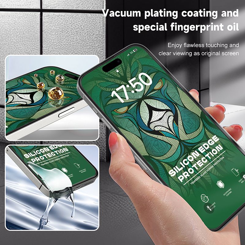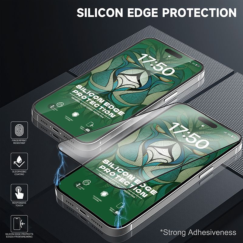 Silicone Edge Design: Flexible silicone frame absorbs shocks and prevents chipping around the edges of the glass.
